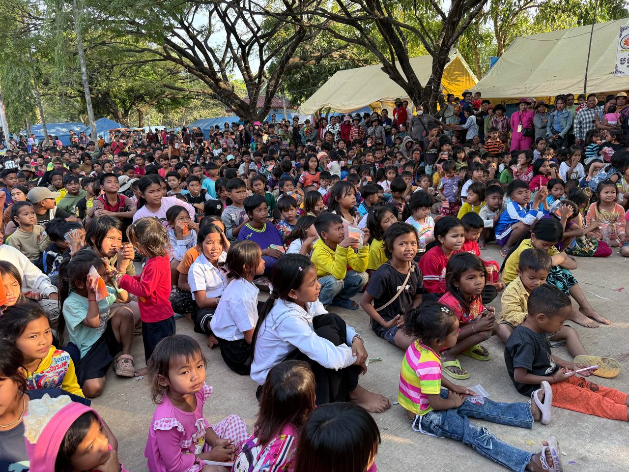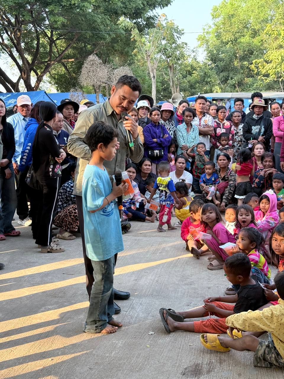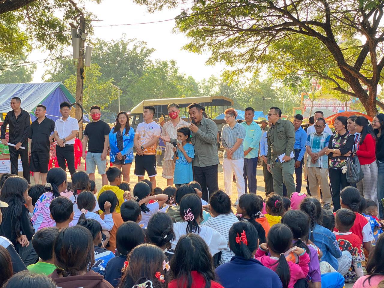 នៅក្នុងឱកាសនោះ លោកបណ្ឌិត ប៉ាន់ខែម ប៊ុនថន បានមានប្រសាសន៍សំណេះសំណាល និងលួងលោមលេីកទឹកចិត្តកុមារៗជាសិស្សានុសិស្សភៀសសឹកនៅមណ្ឌលភៀសសឹកដែលមិនទាន់បានត្រឡប់ទៅផ្ទះវិញឱ្យមានអារម្មណ៍ល្អ តាមរយៈការបង្កេីតកម្មវិធីសប្បាយៗដូចជាសំណួរចម្លេីយ និងច្រៀងរាំជាដេីម ដោយភ្ជាប់នឹងការរំលឹកដាស់តឿនឱ្យកុមារប្រឹងយកចិត្តទុកដាក់សិក្សារៀនសូត្រ ដេីម្បីយកចំណេះដឹងធ្វេីជាដេីមទុនសម្រាប់ការអភិវឌ្ឍជីវិតឱ្យក្លាយជាធនធានយុវជនបន្តវេនដ៏រឹងមាំប្រកបដោយចំណេះដឹង និងសមត្ថភាព ដេីម្បីចូលរួមអភិវឌ្ឍប្រទេសជាតិនាថ្ងៃអនាគត។ ទោះបីជាពេលនេះក្មួយៗកុមារកំពុងឋិតក្នុងកាលៈទេសៈភៀសសឹកយ៉ាងណាក្តីក៏រាជរដ្ឋាភិបាល ក៏ដូចជាក្រុមការងាររាជរដ្ឋាភិបាល ចុះមូលដ្ឋាន ខេត្តបន្ទាយមានជ័យ និងរដ្ឋបាលខេត្តបន្ទាយមានជ័យផ្ទាល់នៅតែបន្តយកចិត្តទុកដាក់ខ្ពស់ ព្រមទាំងផ្តល់ភាពកក់ក្តៅដល់ក្មួយៗកំពុងបន្តស្នាក់នៅបណ្តោះអាសន្នក្នុងមណ្ឌលភៀសសឹកមួយរយៈទៀតខណៈដែលមូលដ្ឋានមិនទាន់រៀបចំរួចរាល់។