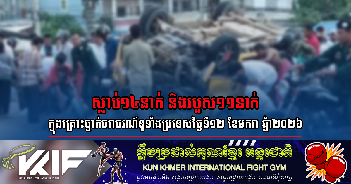ស្លាប់១៤នាក់ និងរបួស១១នាក់ ក្នុងគ្រោះថ្នាក់ចរាចរណ៍ទូទាំងប្រទេសថ្ងៃទី១២ ខែមករា ឆ្នំា២០២៦