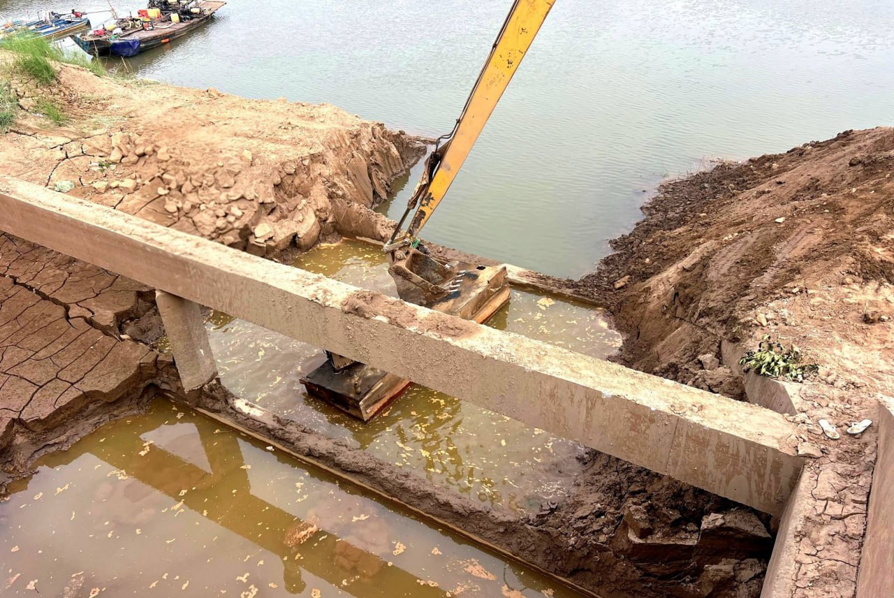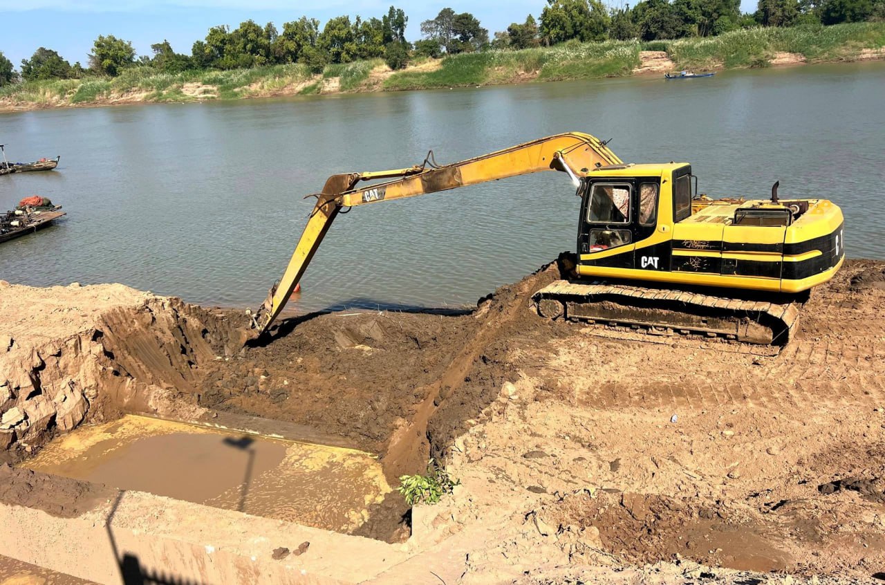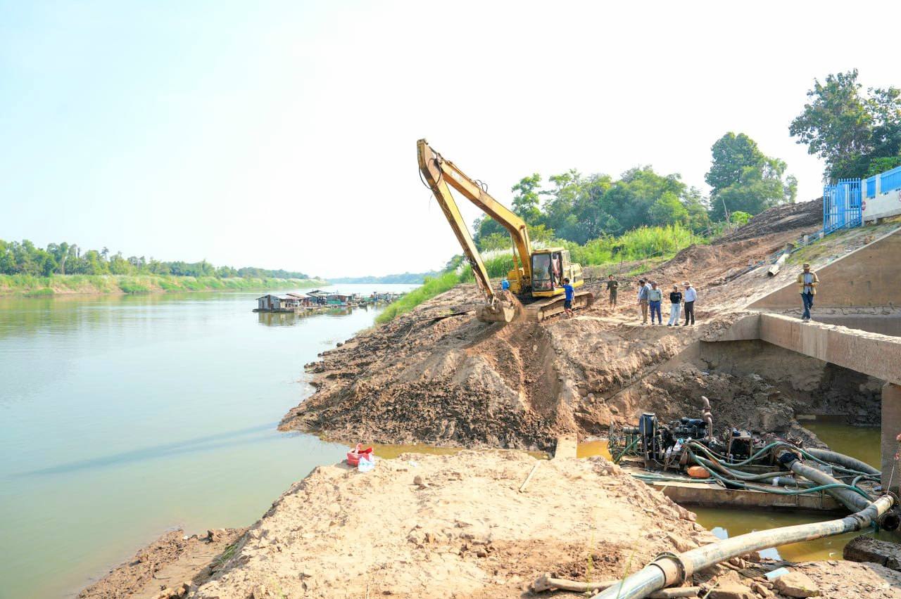 ក្រុមការងារអង្គភាពគ្រប់គ្រង និងអនុវត្តន៍គម្រោង ចុះអនុវត្តការងារថែទាំ និងស្តារកករដីល្បាប់នៅមុខស្ថានីយបូមទឹកព្រែកពោធិ៍ ស្ថិតក្នុងស្រុកស្រីសន្ធរ ខេត្តកំពង់ចាម