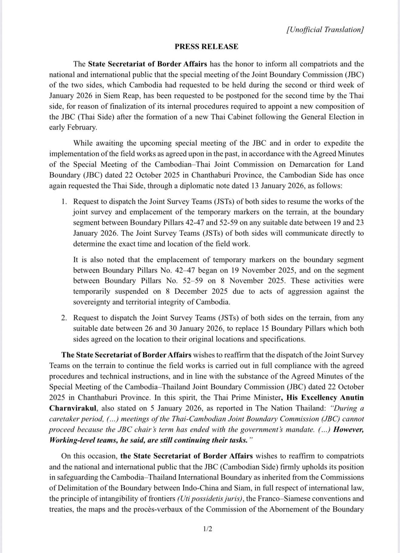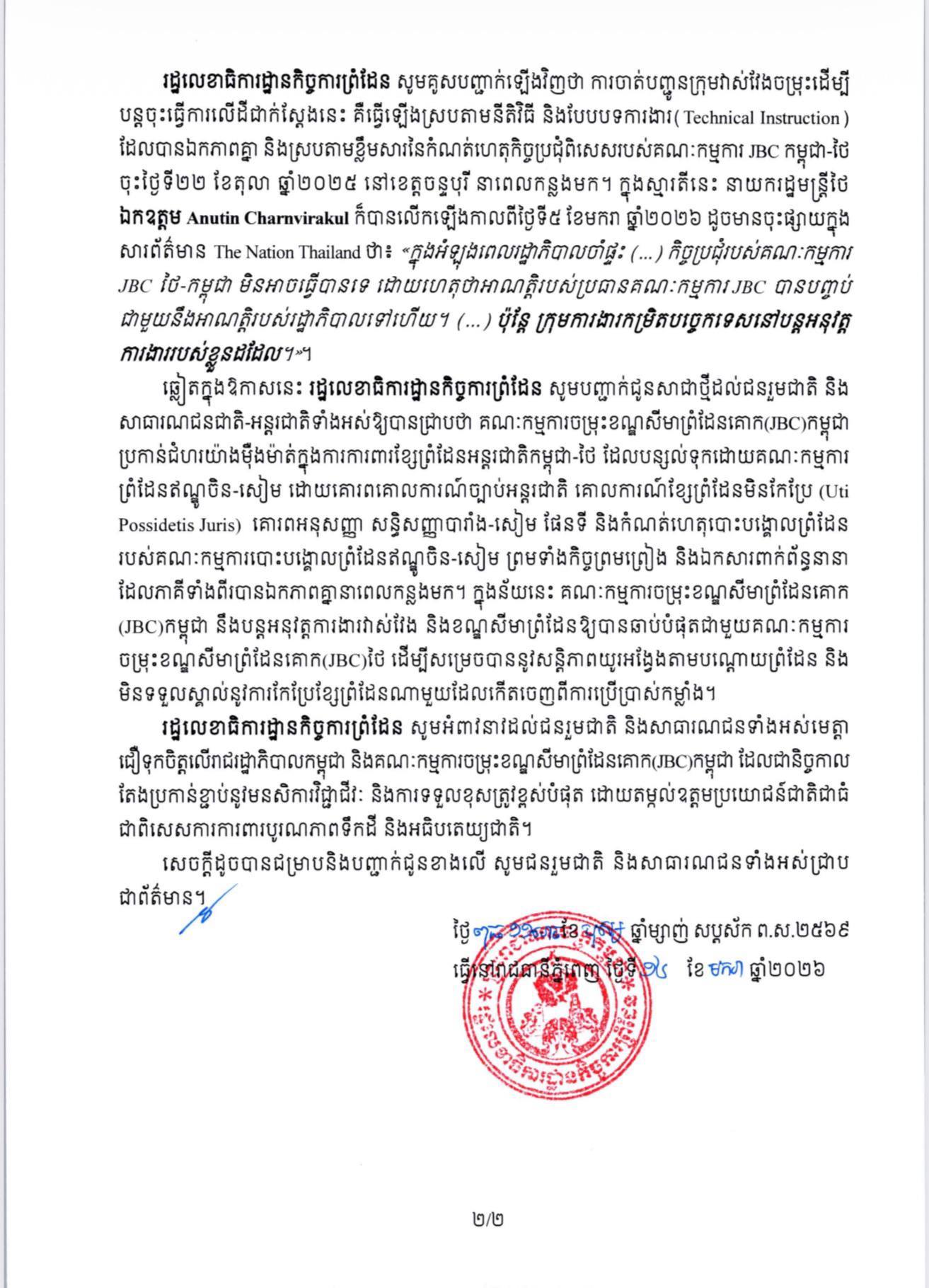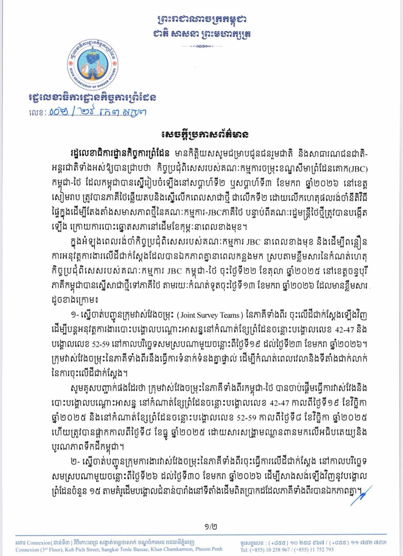 - Cambodia Proposes Two Key Points to Thailand to Accelerate Implementation of Previously Agreed Concrete Groundwork