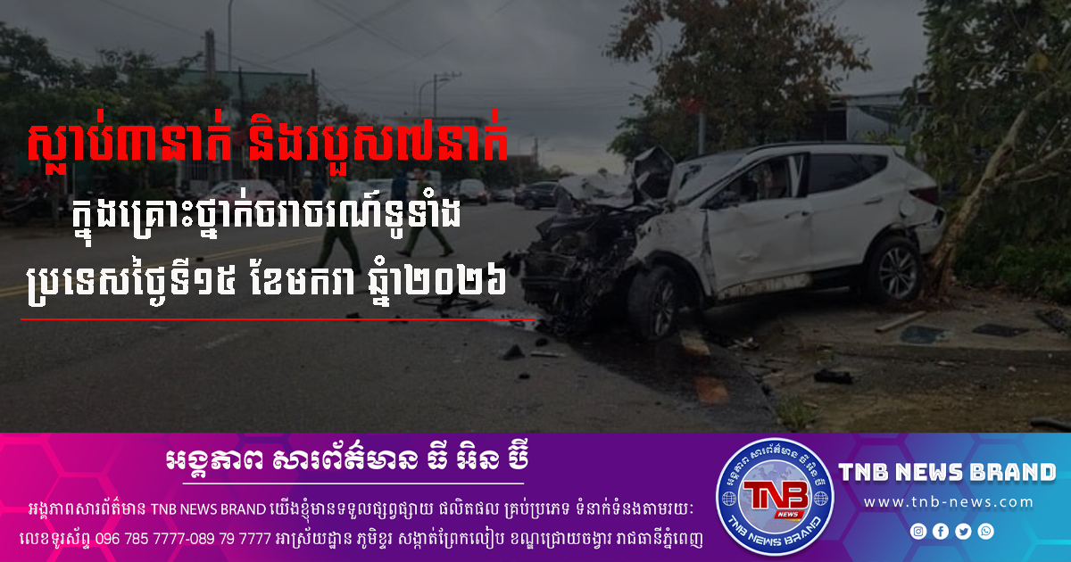 ស្លាប់៣នាក់ និងរបួស៧នាក់ ក្នុងគ្រោះថ្នាក់ចរាចរណ៍ទូទាំងប្រទេសថ្ងៃទី១៥ ខែមករា ឆ្នំា២០២៦