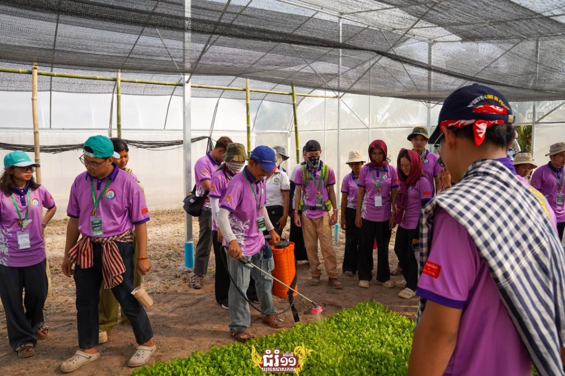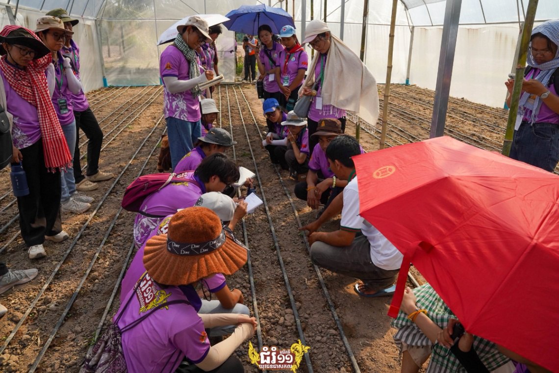 យុវជនបោះជំរំ អនុវត្តផ្ទាល់ការដាំដុះពីកសិកម្មទំនើបនៅសហគមន៍កសិកម្មទំនើបសសី