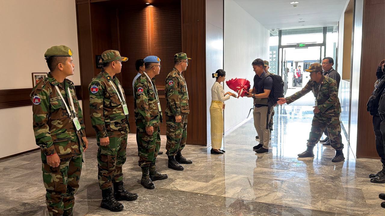 នៅរសៀលថ្ងៃទី១៦ ខែមករា ឆ្នាំ២០២៦ នៅអាកាសយានដ្ឋានអន្តរជាតិសៀមរាបអង្គរ ខេត្តសៀមរាប ក្រសួងការពារជាតិ នៃព្រះរាជាណាចក្រកម្ពុជា បានទទួលស្វាគមន៍យ៉ាងកក់ក្តៅបំផុតចំពោះប្រទេសសិង្ហបុរី ដែលបានចាត់បញ្ជូននាយទាហានចំនួន ២រូប គឺ វរសេនីយ៍ត្រី Li Yiming និងព្រិន្ទបាលឯក Toh Wee Chiang មកចូលរួមជាមួយក្រុមអ្នកសង្កេតការណ៍អាស៊ាន (AOT) ដែលដឹកនាំដោយប្រទេសម៉ាឡេស៊ី ក្នុងការចុះសង្កេតការណ៍ ផ្ទៀងផ្ទាត់ និងរាយការណ៍ អំពីស្ថានភាពព្រំដែន បន្ទាប់ពីការចូលជាធរមាននៃបទឈប់បាញ់។