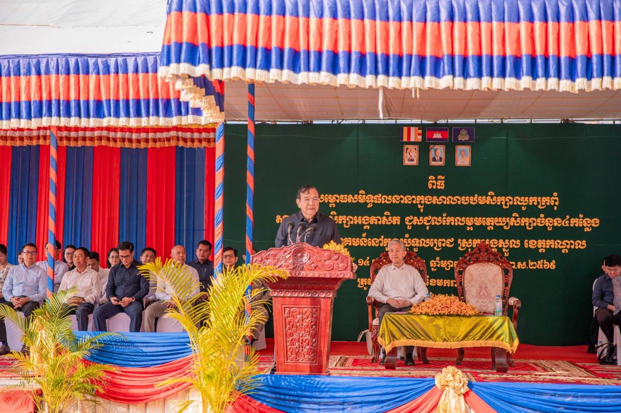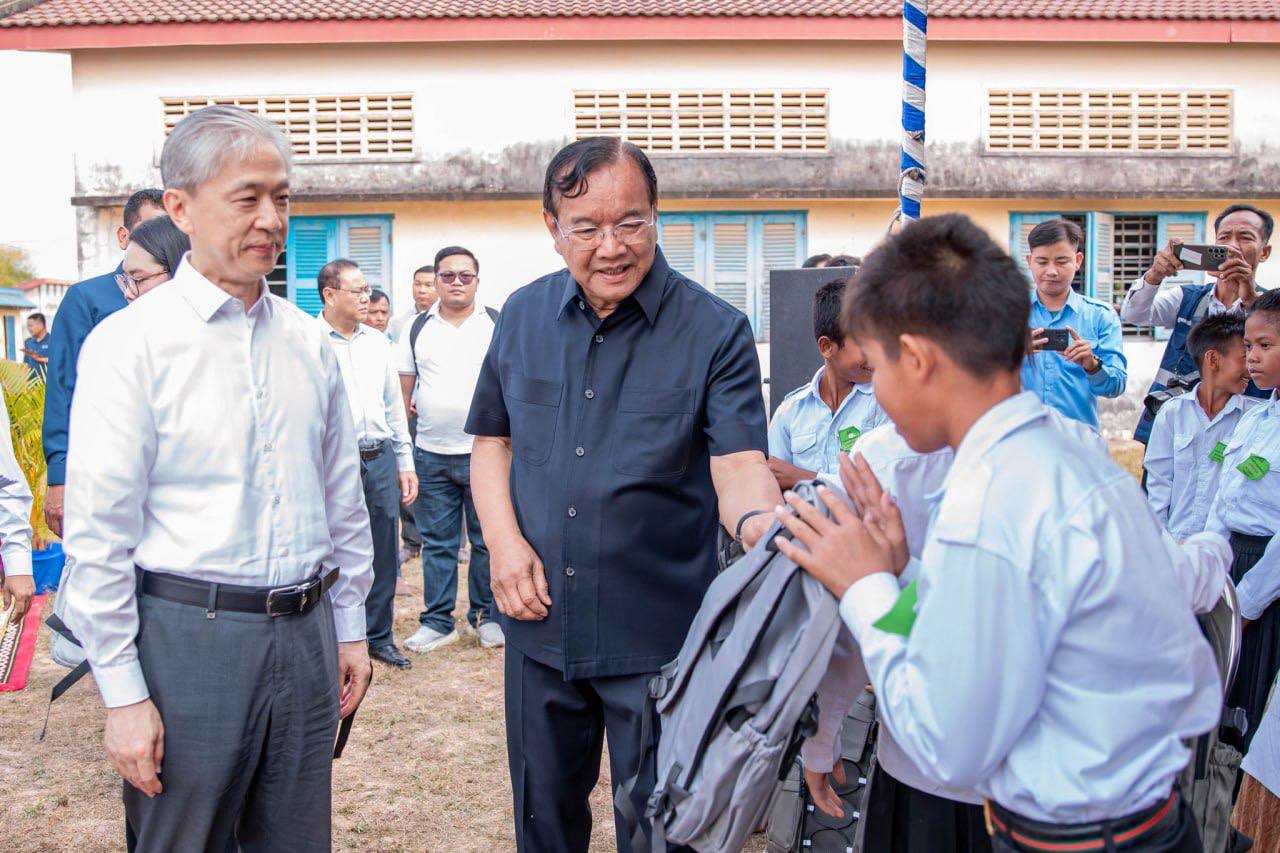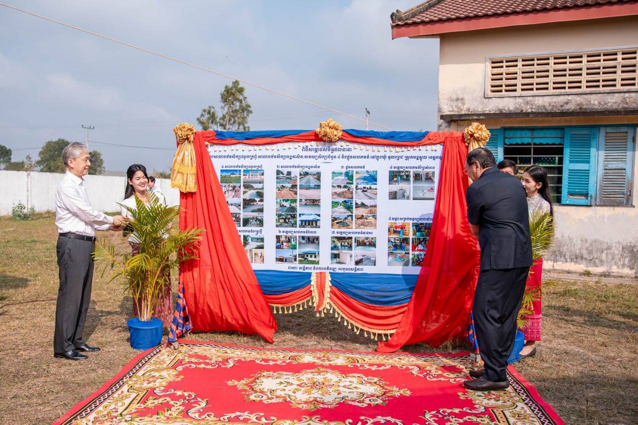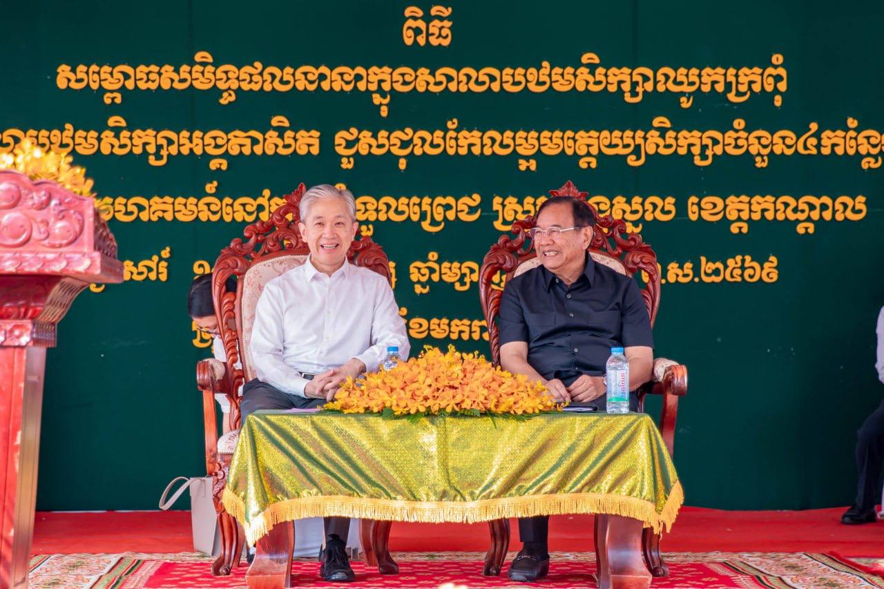 ឯកឧត្តមឧបនាយករដ្ឋមន្ត្រី ប្រាក់ សុខុន រដ្ឋមន្ត្រីការបរទេស និងសហប្រតិបត្តិការអន្តរជាតិ និងឯកឧត្តម វ៉ាង វិនពីន (Wang Wenbin) ឯកអគ្គរដ្ឋទូតវិសាមញ្ញ និងពេញសមត្ថភាព នៃសាធារណរដ្ឋប្រជាមានិតចិន ប្រចាំព្រះរាជាណាចក្រកម្ពុជា បានអញ្ជើញជាសហអធិបតីដ៏ខ្ពង់ខ្ពស់ ក្នុងពិធីសម្ពោធសមិទ្ធផលនានា រួមមានការសាងសង់ និងកែលម្អ នៅសាលាបឋមសិក្សាឈូកក្រពុំ សាលាបឋមសិក្សាអង្គតាសិត សាលាមត្តេយ្យចំនួន ៤ ព្រមទាំងផ្លូវលំ នៅឃុំទួលព្រេជ ស្រុកអង្គស្នួល ខេត្តកណ្តាល ដែលជាជំនួយរបស់ស្ថានទូតនៃសាធារណរដ្ឋចិនប្រចាំកម្ពុជា នាព្រឹកថ្ងៃទី១៧ ខែមករា ឆ្នាំ២០២៦។