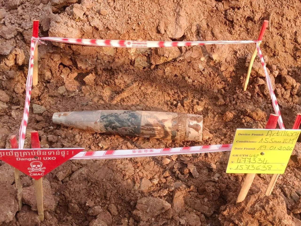 អគ្គនាយកស៊ីម៉ាក់៖ នៅថ្ងៃទី១៩ ខែមករា ឆ្នាំ២០២៦នេះ នៅទិសស្រអែម ស្រុកជាំក្សាន្ត ខេត្តព្រះវិហារ កម្លាំងជំនាញអង្គភាពCMAC បានបោសសម្អាត គ្រាប់១៥៥មម សំណល់យុទ្ធភណ្ឌសង្គ្រាមសៀមឈ្លានពាន !! គ្រាប់ខ្លះមិនផ្ទុះនៅរាយប៉ាយលេី ដី ខ្លះលិចជ្រៅក្នុងដី ! ដេីម្បីសុខសុវត្ថិភាព ប្រជាពលរដ្ឋ ទោះបីជាគ្រាប់ទាំងនោះស្ថិតនៅលេីដី លិចរាក់ឬជ្រៅក្នុង ដី ក្នុងទឹកស្អីក៍ដោយ ត្រូវតែបោសសម្អាតកម្ទេចខ្លាំងនិងឃាតករឈាមជាតិផ្ទុះ និងលាក់មុខទាំងអស់ចោល!៕