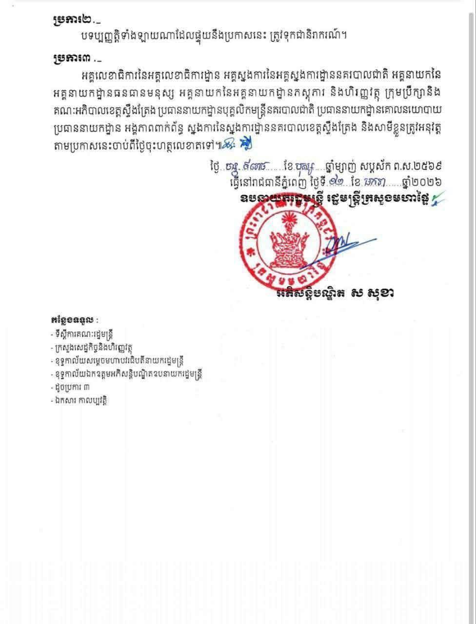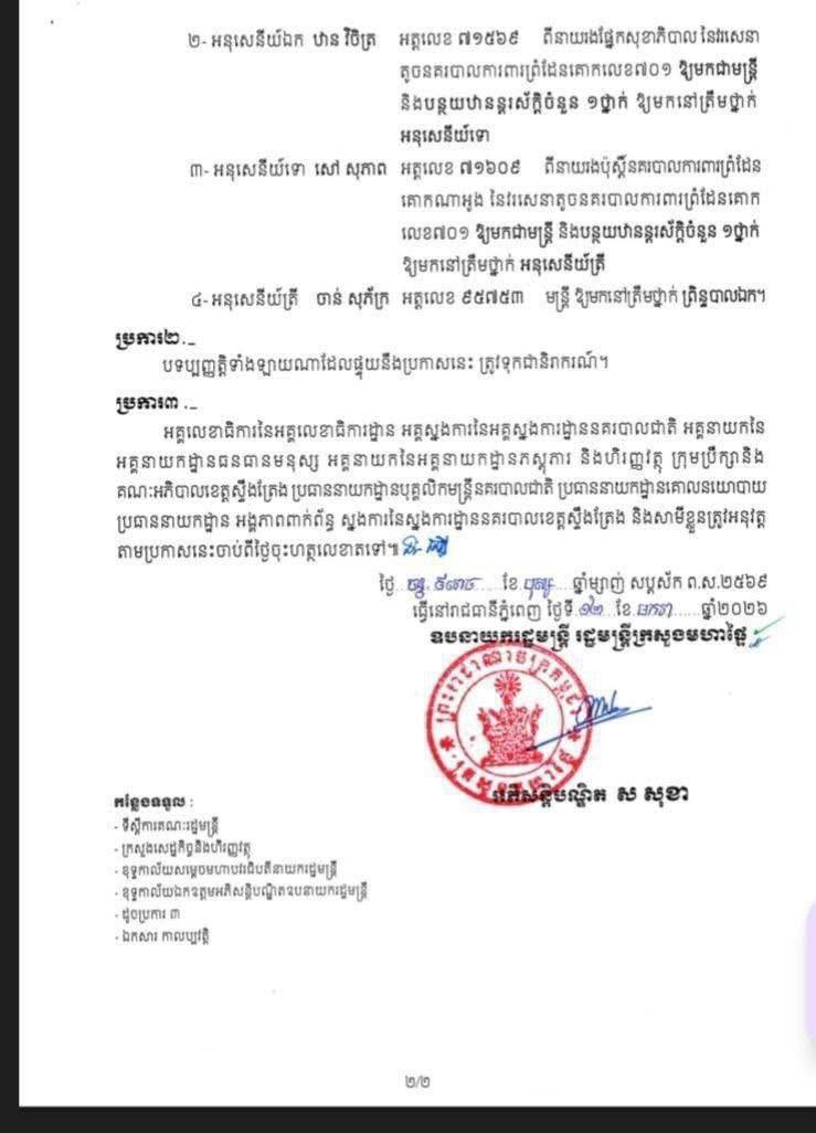 សម្រេចដកហូតមុខតំណែង នគរបាលបាលខេត្តស្ទឹងត្រែង ចំនួន៦រូប ក្នុងនោះមានម្នាក់ ថ្នាក់ឧត្តមសេនីយ៍ត្រី (ផ្កាយ១)