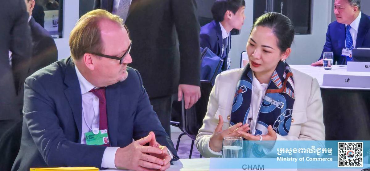 (ក្រុងដាវ៉ូស-ក្លូស្ទ័រ, ប្រទេសស្វ៊ីស)៖ នារសៀលថ្ងៃអង្គារ ទី២០ ខែមករា ឆ្នាំ២០២៦ នៅក្រុងដាវ៉ូស-ក្លូស្ទ័រប្រទេសស្វ៊ីស លោកជំទាវ ចម និម្មល រដ្ឋមន្រ្តីក្រសួងពាណិជ្ជកម្ម បានចូលរួមជាវាគ្មិននៅក្នុងកិច្ចពិភាក្សាក្រោមប្រធានបទស្តីពី “New Pathways for ASEAN Growth and Productivity” នៅអំឡុងពេលនៃកិច្ចប្រជុំប្រចាំឆ្នាំនៃវេទិកា សេដ្ឋកិច្ច ពិភពលោកឆ្នាំ២០២៦។