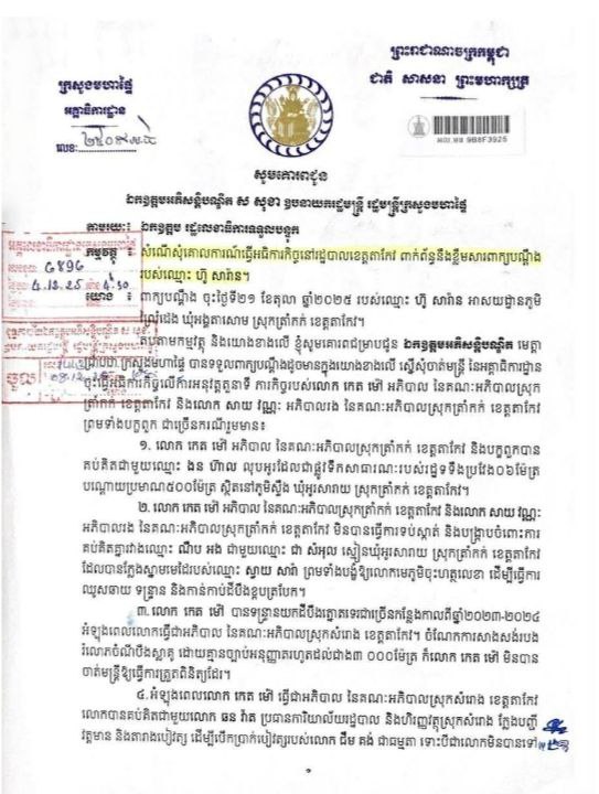 ខេត្តតាកែវ ៖ ត្រឹមជាអ្នកលក់កង់ឡានឈ្មោះ ហ៊ូ សារ៉ាន ដឹងរឿងដូចជាច្បាស់ណាស់ ក្នុងកិច្ចការរដ្ឋបាលស្រុក រហូតដាក់លិខិតប្តឹងរាយការណ៍អភិបាលស្រុកត្រាំកក់ ទៅក្រសួងមហាផ្ទៃទាំងគ្មានមូលដ្ឋានច្បាស់លាស់!.. នេះបើយោងតាមប្រភពដែលសារព័ត៌មានទទួលបាន នៅថ្ងៃទី២១ ខែមករា ឆ្នាំ២០២៦នេះ។