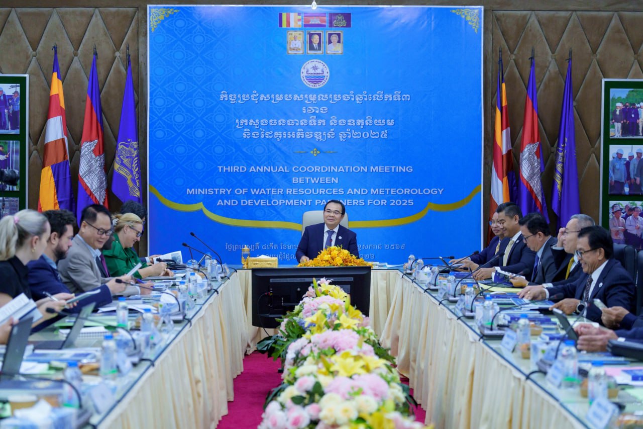 សូមជម្រាបថា កិច្ចប្រជុំសម្របសម្រួលរវាងក្រសួងធនធានទឹក និងឧតុនិយម និងដៃគូអភិវឌ្ឍន៍ បានរៀបចំឡើងចំនួនពីរលើករួចមកហើយ ដែលកិច្ចប្រជុំលើកទី១ បានដាក់ចេញនូវវេទិកាដែលមានរចនាសម្ព័ន្ធច្បាស់លាស់សម្រាប់តម្លាភាព និងកិច្ចសហប្រតិបត្តិការ និងកិច្ចប្រជុំលើកទី២ ក្នុងឆ្នាំ២០២៤ បានបញ្ជាក់សារជាថ្មីថាវិស័យទឹកជាអាទិភាពអភិវឌ្ឍន៍ជាតិក្រោមយុទ្ធសាស្ត្របញ្ចកោណ ដំណាក់កាលទី១ ព្រមទាំងបានជំរុញកិច្ចសហប្រតិបត្តិការលើផ្នែកគោលនយោបាយ បច្ចេកវិទ្យា និងភាពធន់នឹងការប្រែប្រួលអាកាសធាតុ។
