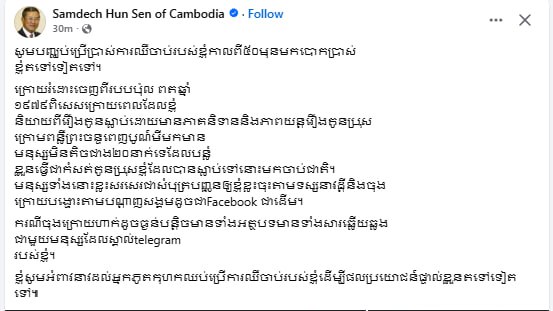 សម្តេចហ៊ុន សែន ៖ សូមបញ្ឈប់ប្រើប្រាស់ការឈឺចាប់របស់ខ្ញុំ កាលពី៥០មុនមកបោកប្រាស់ ខ្ញុំតទៅទៀតទៅ
