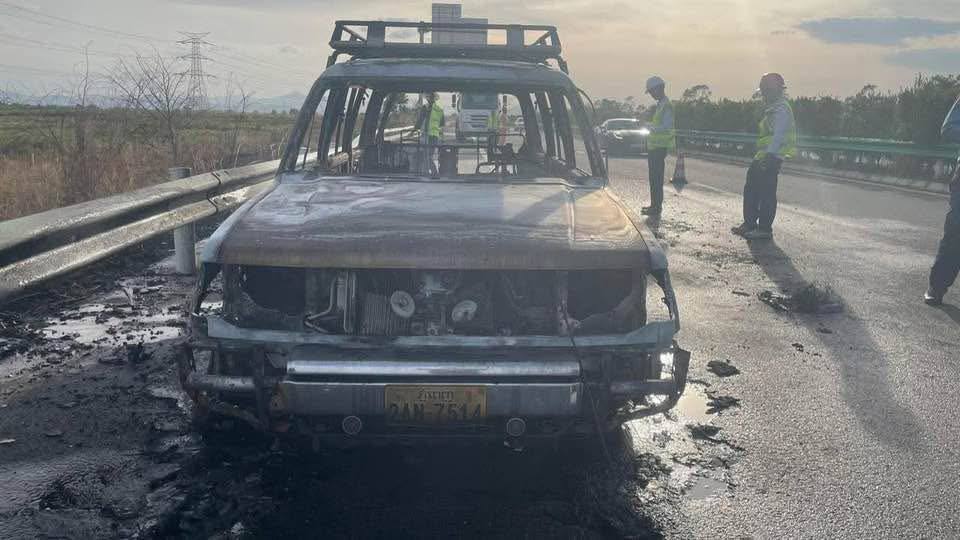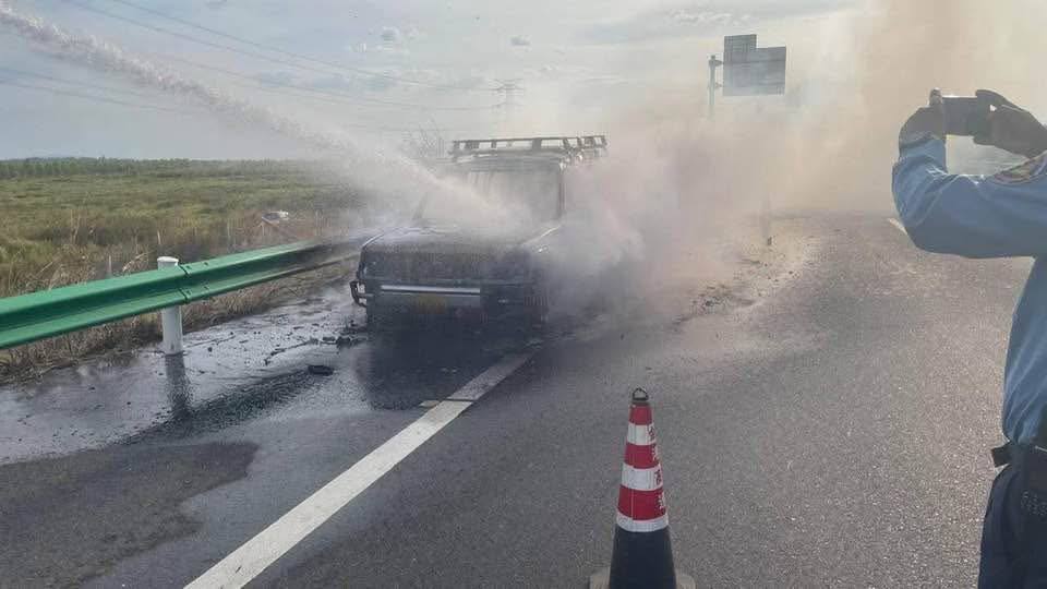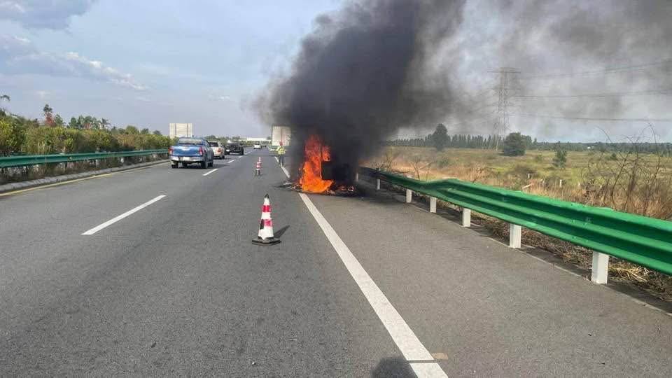 រថយន្ដ១គ្រឿង ឆ្លងចរន្ដអគ្គិសនី បណ្ដាលឲ្យឆេះរថយន្ដយ៉ាងសន្ធោសន្ធៅ នៅផ្លូវល្បឿនលឿន