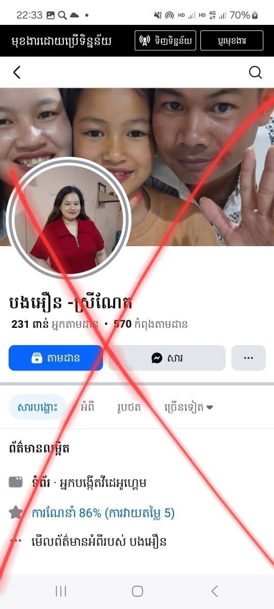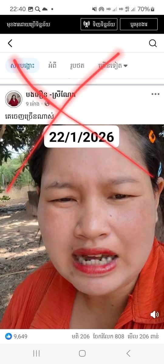 ២. គោលបំណងនៃវីដេអូ៖ តាមការស្រាវជ្រាវ ម្ចាស់គណនីខាងលើ គឺជាអ្នកផលិតវីដេអូដើម្បីទាក់ទាញចំណាប់អារម្មណ៍ (Content Creator) ក្នុងគោលបំណងស្វែងរកប្រាក់ចំណូលតាមហ្វេសប៊ុក ដោយបាននិយាយបំផ្លើសខុសពីការពិត ដែលធ្វើឱ្យប៉ះពាល់ដល់សណ្តាប់ធ្នាប់សាធារណៈ និងបង្កឱ្យមានការភ័យខ្លាចដល់ប្រជាពលរដ្ឋ។