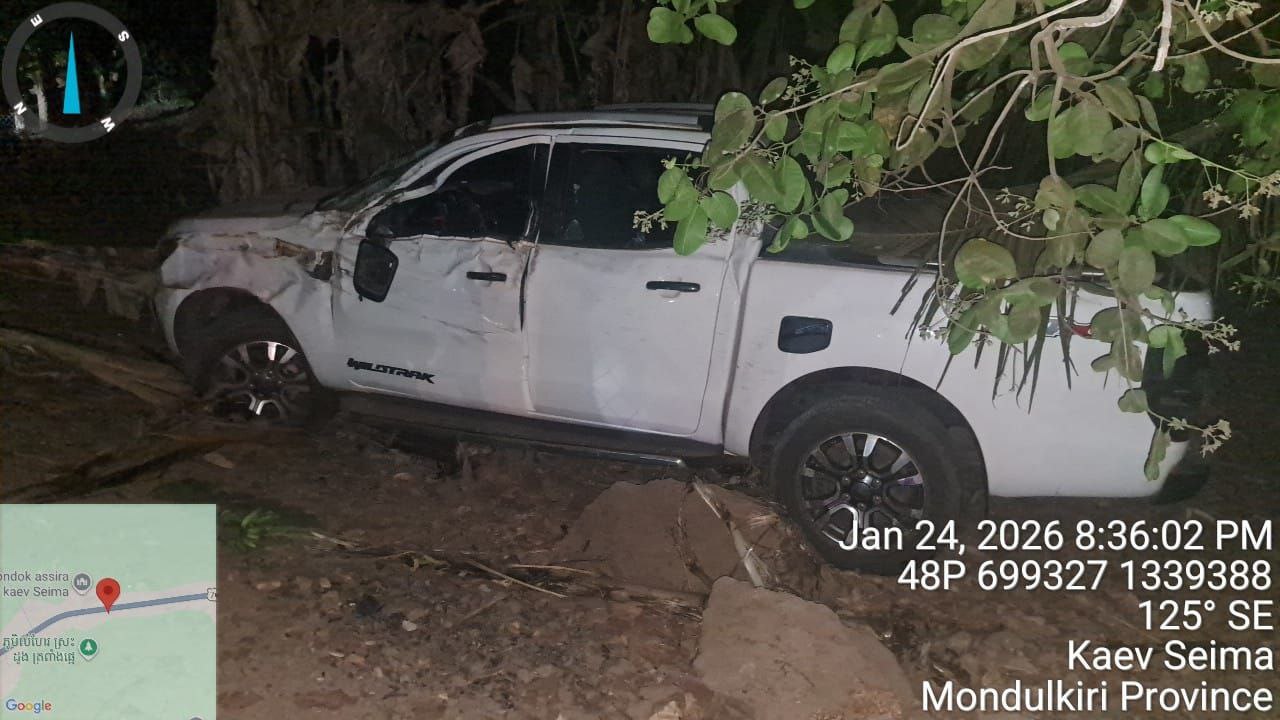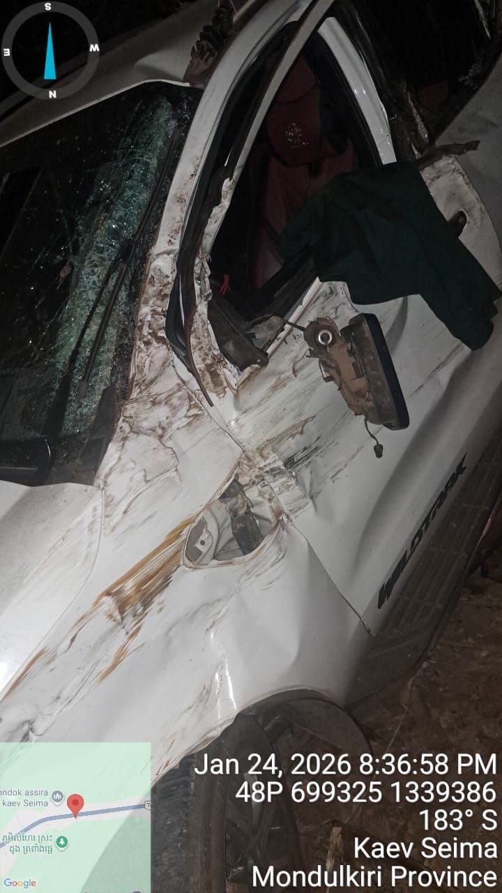 មណ្ឌលគិរី៖ ករណីគ្រោះថ្នាក់ចរាចរណ៍ បានកើតឡើងនៅវេលា យប់ថ្ងៃទី ២៤ ខែមករា ឆ្នាំ២០២៥ ត្រង់ចំណុច ចន្លោះគីឡូម៉ែត្រលេខ ៥២/៥៣ ផ្លូវជាតិលេខ ៧៦ ស្ថិតនៅភូមិត្រពាំងផ្អេ ឃុំស្រែខ្ទុម ស្រុកកែវសីមា ខេត្តមណ្ឌលគិរី បណ្ដាលឲ្យ នគរបាលម្នាក់បាត់បង់ជីវិត។