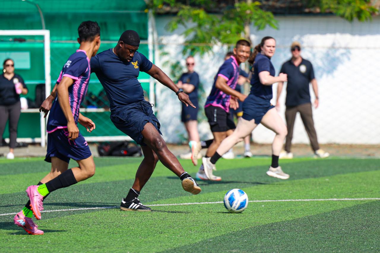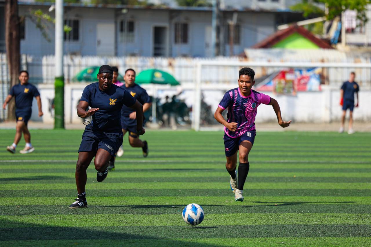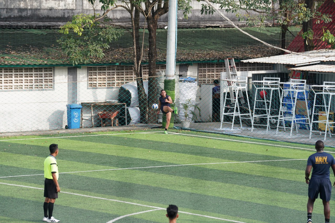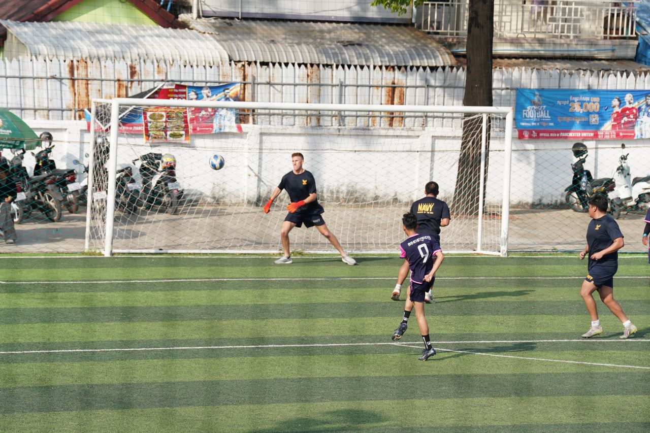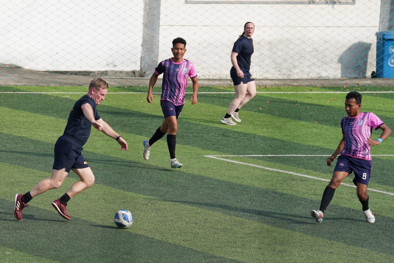 (ព្រះសីហនុ)៖ ក្រោយពេលចូលសំចតនៅមូលដ្ឋានសមុទ្ររាមក្រៅពីការធ្វើលំហាត់ហ្វឹកហ្វឺនរួមគ្នាហើយនោះ នៅរសៀលថ្ងៃអាទិត្យ ទី២៥ ខែមករា ឆ្នាំ២០២៦នេះ កងទ័ពជើងទឹករបស់កម្ពុជា និងអាមេរិក បានបើកការប្រកួតបាល់ទាត់ជាលក្ខណៈមិត្តភាពផងដែរ។