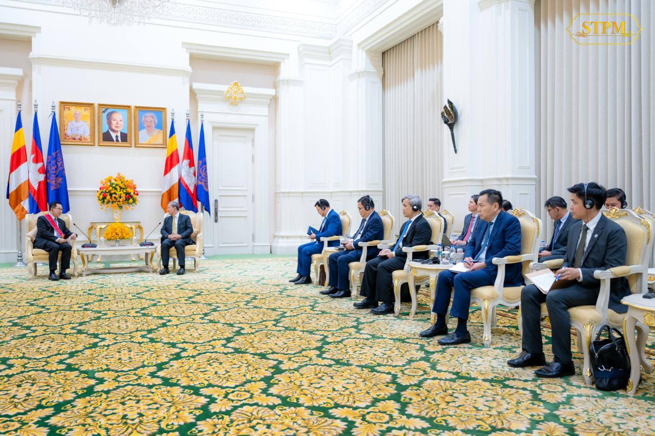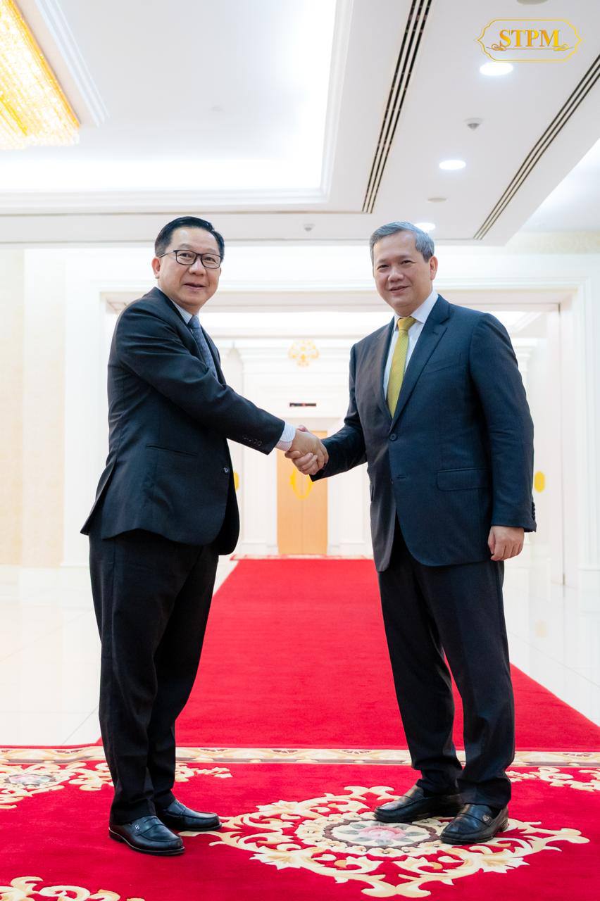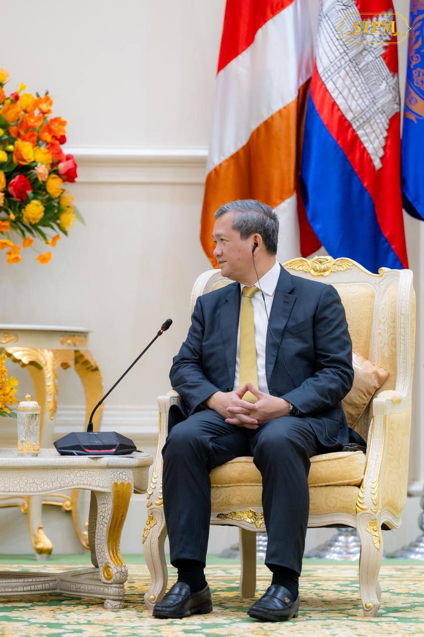 សម្តេចមហាបវរធិបតី ហ៊ុន ម៉ាណែត នាយករដ្ឋមន្ត្រីនៃព្រះរាជាណាចក្រកម្ពុជា ជួបជាមួយ ឯកឧត្តមបណ្ឌិត Linkham Douangsavanh រដ្ឋមន្ត្រីក្រសួងកសិកម្ម និងបរិស្ថាន នៃសាធារណរដ្ឋប្រជាធិបតេយ្យប្រជាមានិតឡាវ ក្នុងជំនួបសម្តែងការគួរសម និងពិភាក្សាការងារនៅវិមានសន្តិភាព។