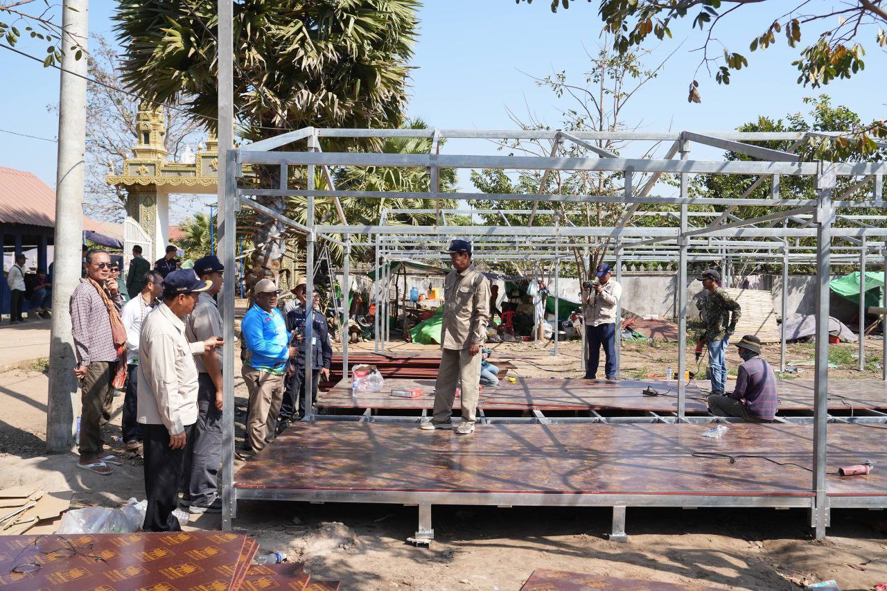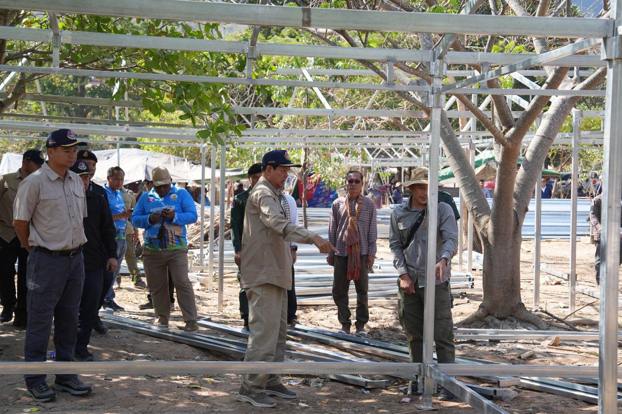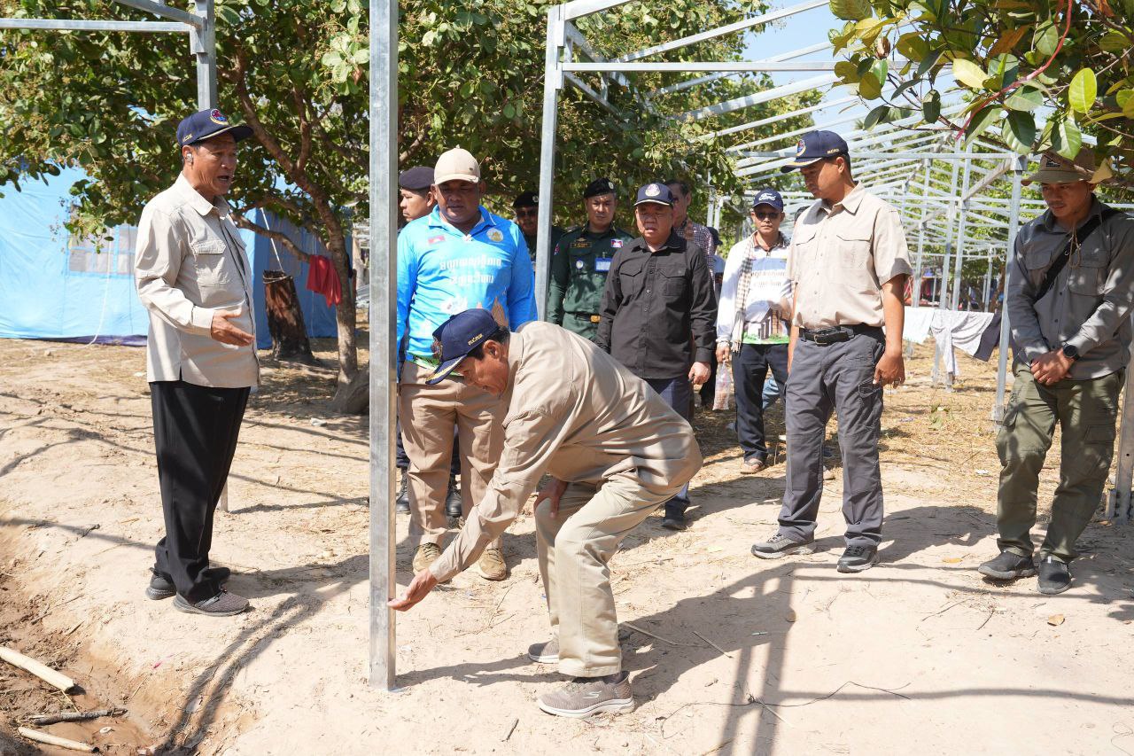 ទេសរដ្ឋមន្រ្តី គន់ គីម អញ្ជើញចុះពិនិត្យការសាងសង់រោងស្នាក់នៅបណ្តោះអាសន្ន ជូនប្រជាពលរដ្ឋភៀសសឹកនៅខេត្តព្រះវិហារ