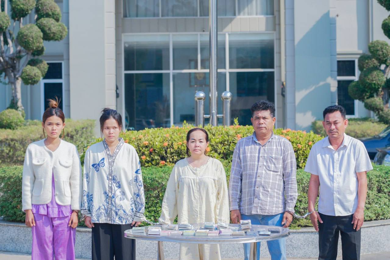 ១- ឈ្មោះ ផេង សុខឡៃ ភេទស្រី អាយុ៤៤ឆ្នាំ,២-ឈ្មោះ អឿន សំអន ភេទប្រុស អាយុ៤៧ឆ្នាំ, ៣-ឈ្មោះ តុង យុទ្ធ ភេទប្រុស អាយុ៥០ឆ្នាំ, ៤-ឈ្មោះ ទ្រី ស៊ីម៉ា ភេទស្រី អាយុ២៣ឆ្នាំ, ៥-ឈ្មោះ ទុយ ម៉ែងហ័ង ភេទស្រី អាយុ១៩ឆ្នាំ។ ចំណែកឯអ្នកមិនពាក់ព័ន្ធចំនួន០៣នាក់ទៀត បានអនុញ្ញាតឲ្យវិលត្រឡប់ទៅលំនៅដ្ឋានវិញ។