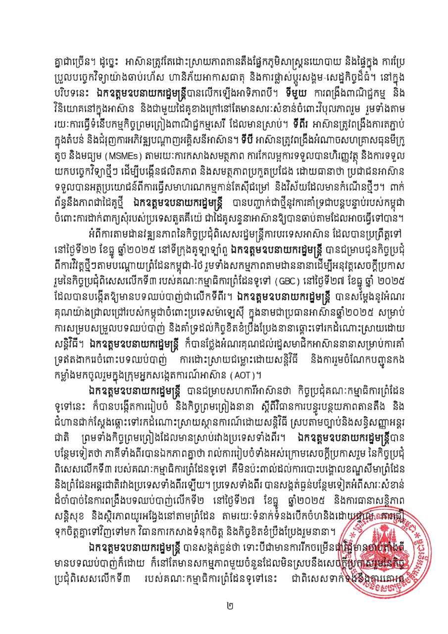 *ទីបី៖ អាស៊ានត្រូវពង្រឹងអំណាចសហគ្រាសមីក្រូធុនតូច និងមធ្យម (MSMEs) តាមរយៈការកសាងសមត្ថភាព ការកែលម្អការទទួលបានហិរញ្ញវត្ថុ និងការទទួលយកបច្ចេកវិទ្យាថ្មីៗ ដើម្បីបង្កើនផលិតភាព និងសមត្ថភាពប្រកួតប្រជែង ដោយធានាថា ប្រជាជនអាស៊ានទទួលបានអត្ថប្រយោជន៍ពីការធ្វើសមាហរណកម្មកាន់តែស៊ីជម្រៅ និងវិស័យដែលមានកំណើនថ្មីៗ៕