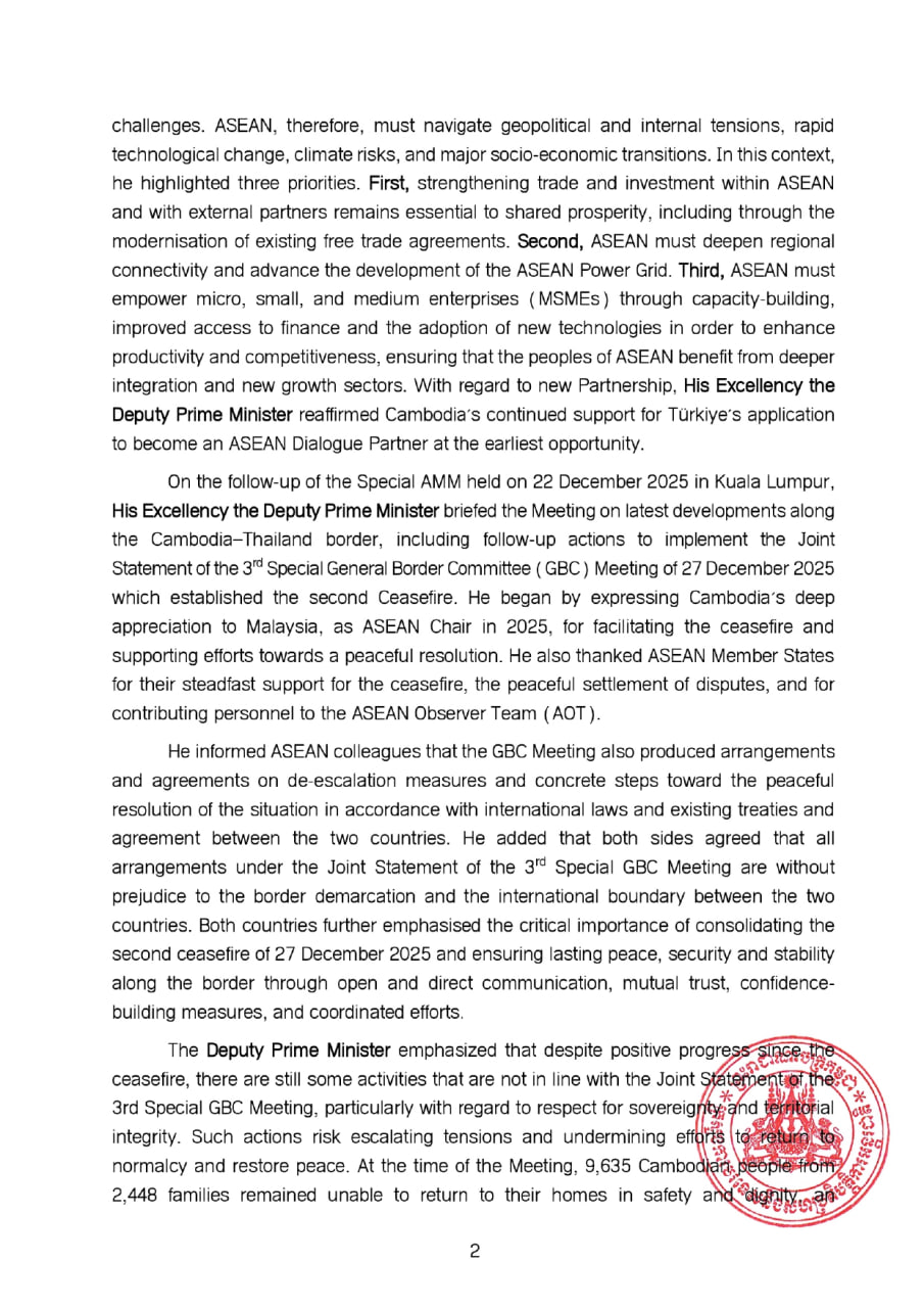 នៅក្នុងកិច្ចប្រជុំ លោកឧបនាយករដ្ឋមន្ត្រី បានកត់សម្គាល់ថា មូលបទ និងអាទិភាពរបស់ វិបុលភាពក្នុងតំបន់កំពុងត្រូវបានសាកល្បងដោយបញ្ហាប្រឈមដែលស្មុគស្មាញ និងមានភាពប្រទាក់ក្រឡាគ្នាជាច្រើន។