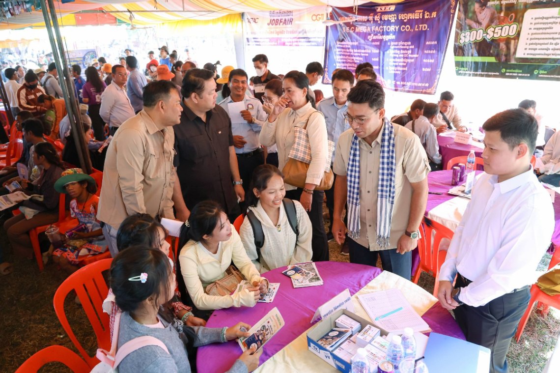 សៀមរាប៖ វេទិកាការងារ សន្តិសុខសង្គម និងបណ្តុះបណ្តាលវិជ្ជាជីវៈ ជាមួយឱកាសការងារ ៨៩ ៥៣៩កន្លែង និងឱកាសទទួលបានព័ត៌មានស្តីពីអត្ថប្រយោជន៍ ប.ស.ស. ត្រូវបានប្រារព្ឋធ្វើឡើងនៅក្នុងបរិវេណសាលាបឋមសិក្សា និងអនុវិទ្យាល័យភូមិគំរូ ក្នុងស្រុកក្រឡាញ់ ខេត្តសៀមរាប នៅថ្ងៃអាទិត្យ ទី១ ខែកុម្ភៈ ឆ្នាំ២០២៦ ក្រោមអធិបតី ឯកឧត្តម យឹម ស៊ីណន រដ្ឋលេខាធិការ តំណាងដ៏ខ្ពង់ខ្ពស់ ឯកឧត្តម ហេង សួរ រដ្ឋមន្ត្រីក្រសួងការងារ និងបណ្ដុះបណ្ដាលវិជ្ជាជីវៈ។