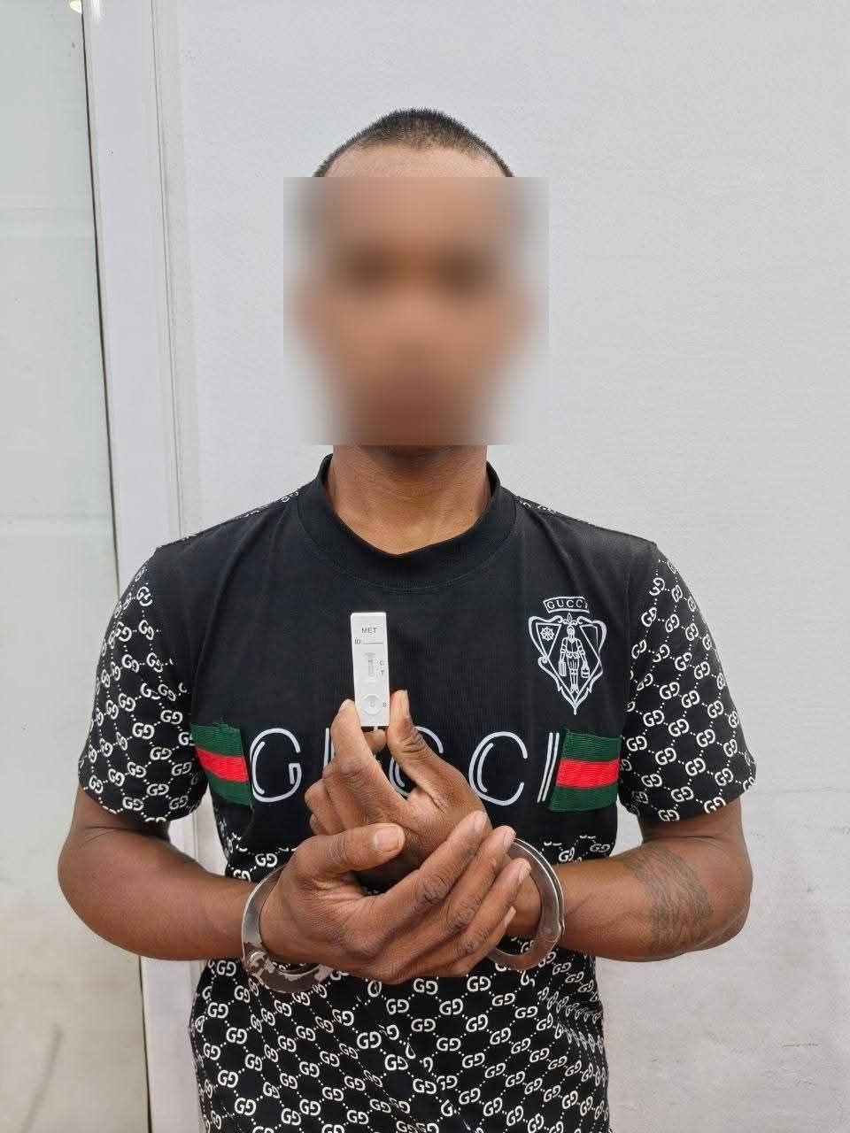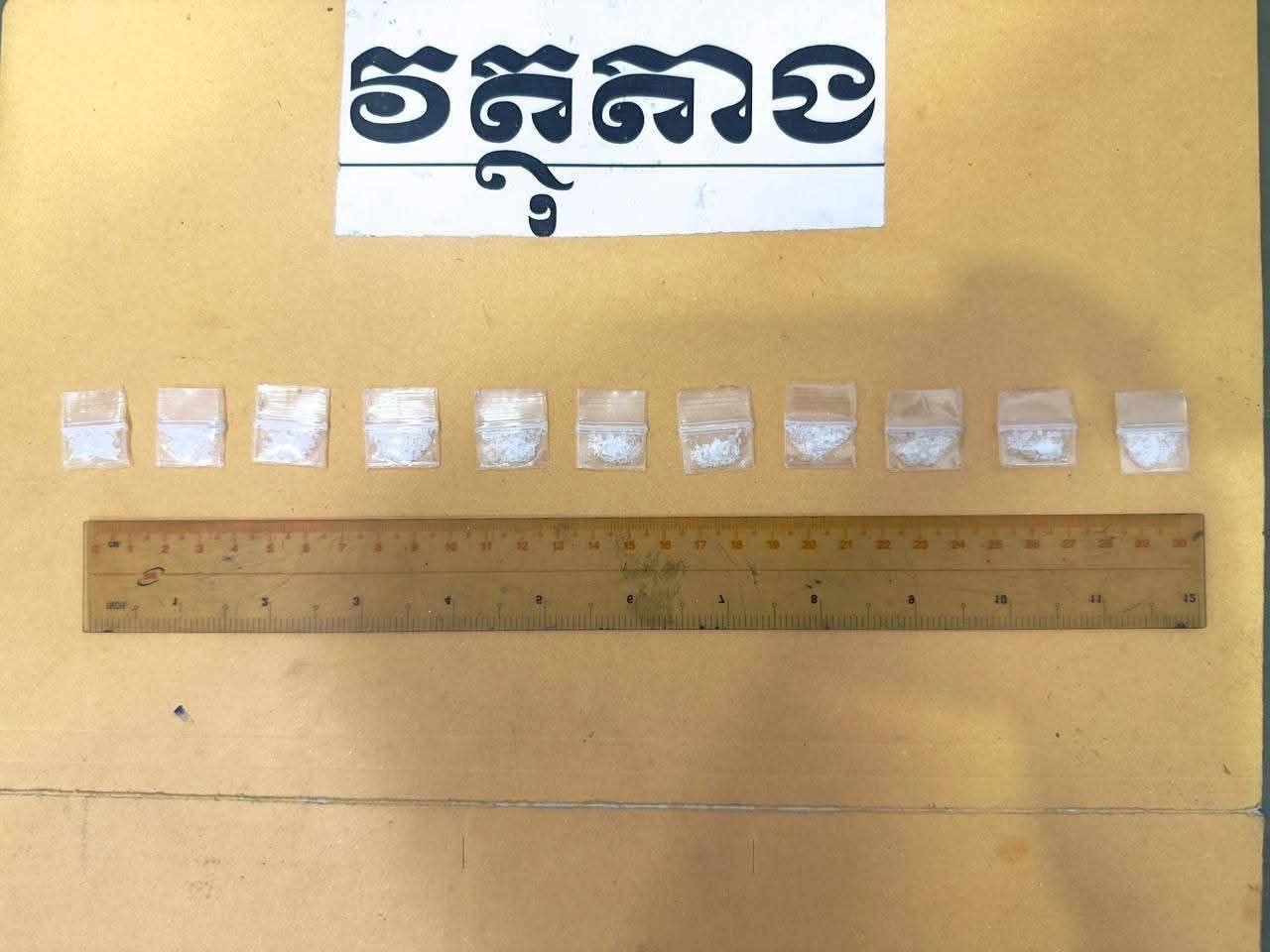 ជនសង្ស័យដែលត្រូវបានឃាត់ខ្លួនមានឈ្មោះ ថូ គង្គា ភេទប្រុស អាយុ១៩ឆ្នាំ ជនជាតិខ្មែរ មុខរបរមិនពិតប្រាកដ រស់នៅភូមិព្រែកឡុង សង្កាត់រកាខ្ពស់ ក្រុងតាខ្មៅ (មានសារធាតុញៀនក្នុងទឹកនោម)។ វត្ថុតាងដែលដកហូតបានរួមមាន ម្សៅក្រាមពណ៌សថ្លាសង្ស័យជាសារធាតុញៀន (ម៉ាទឹកកក) ចំនួន ១១កញ្ចប់ (ទម្ងន់ ០,៦២ក្រាម)។