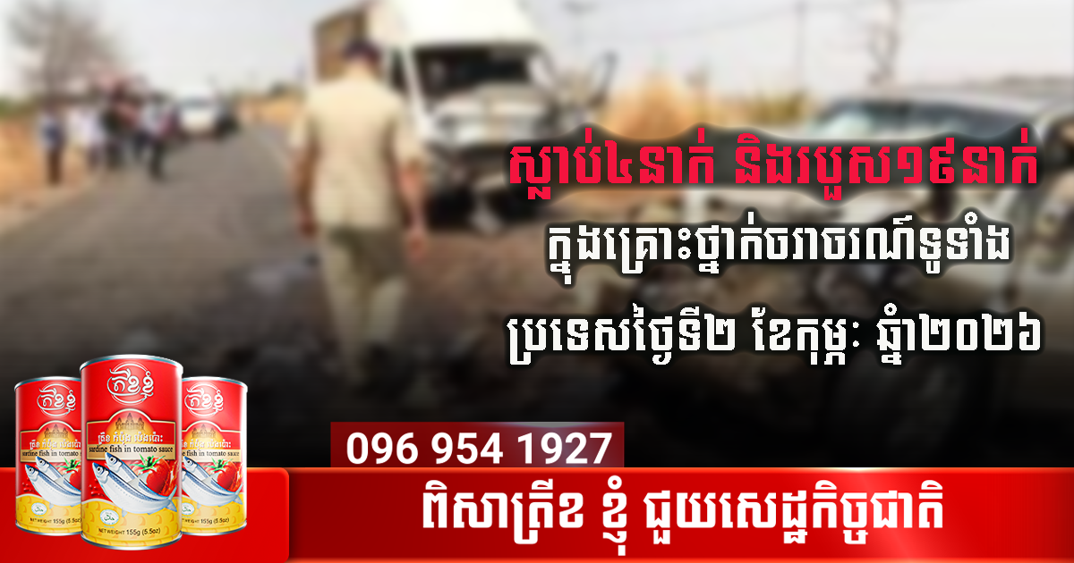 ស្លាប់៤នាក់ និងរបួស១៩នាក់ ក្នុងគ្រោះថ្នាក់ចរាចរណ៍ទូទាំងប្រទេសថ្ងៃទី២ ខែកុម្ភៈ ឆ្នំា២០២៦