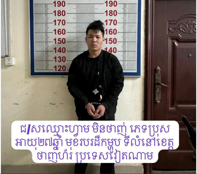 ជនសង្ស័យមានឈ្មោះហ្វាម មិនថាញ់ ភេទប្រុស អាយុ២៧ឆ្នាំ ជនជាតិវៀតណាម មុខរបរដឹកជញ្ជូនម្ហូប មានទីលំនៅខេត្តថាញ់ហ័រ ប្រទេសវៀតណាម ។