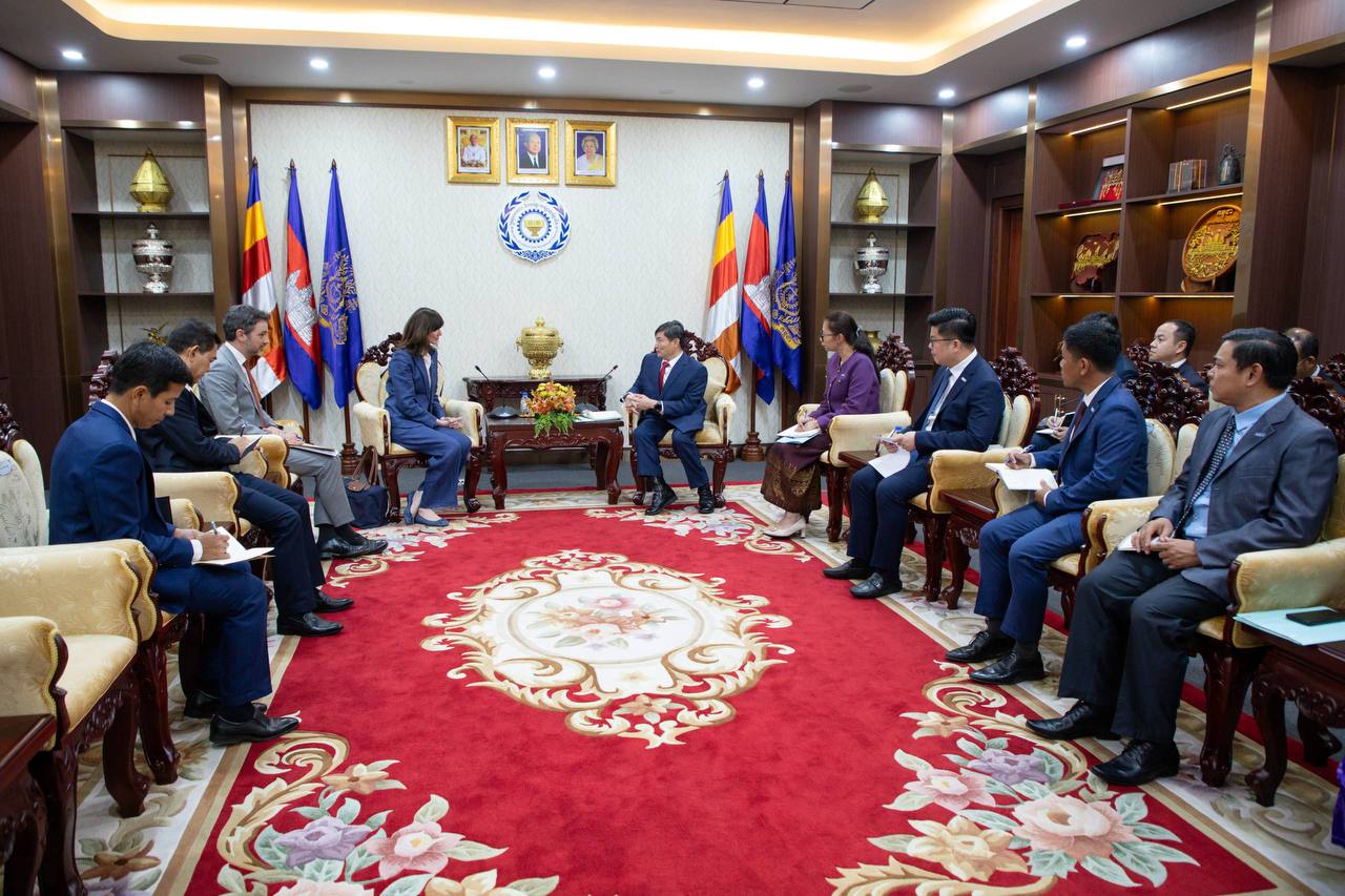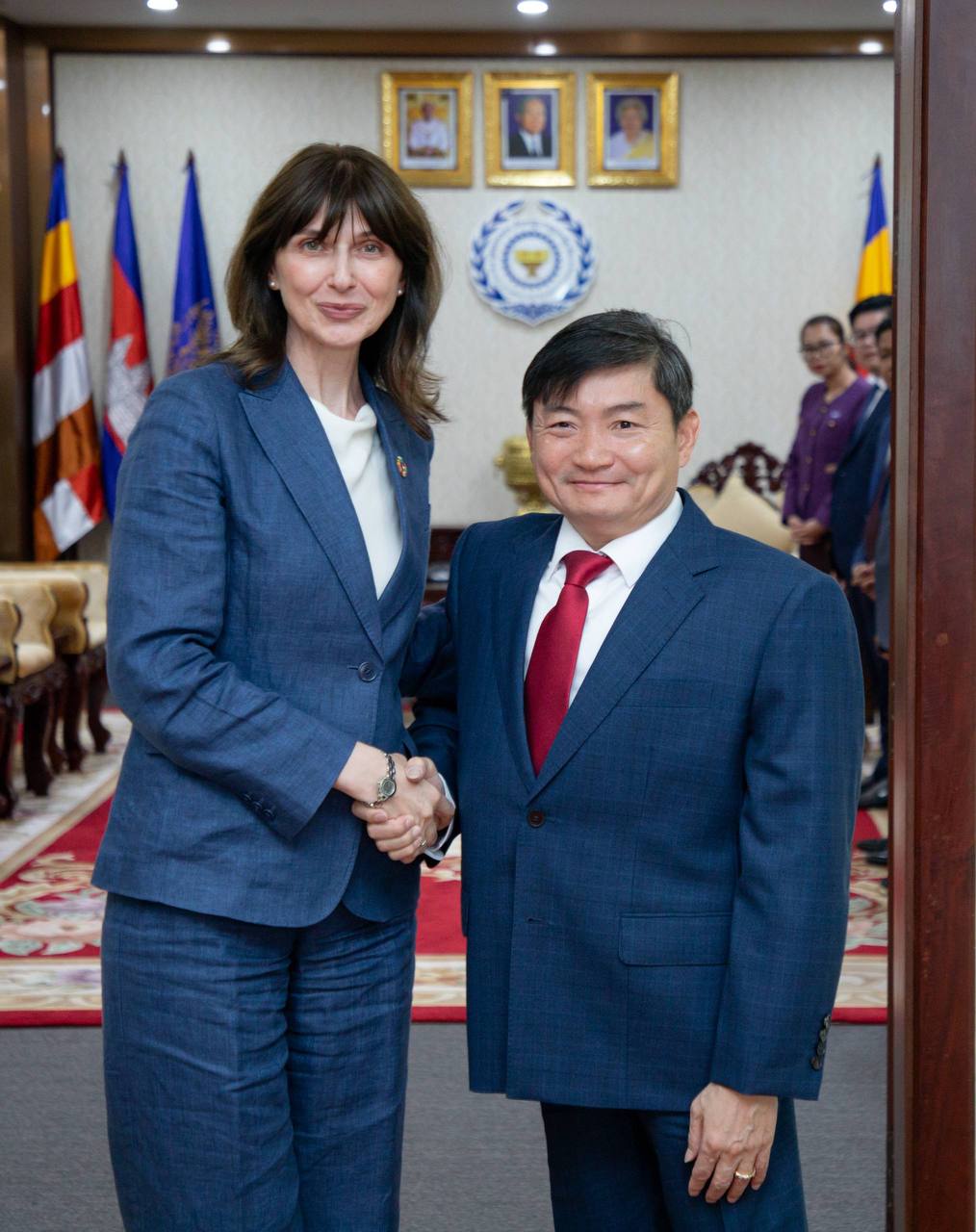 ភ្នំពេញ៖ ឯកឧត្ដម ហេង សួរ រដ្ឋមន្ត្រីក្រសួងការងារ និងបណ្ដុះបណ្ដាលវិជ្ជាជីវៈបានទទួលជួបសម្តែងការគួរសម និងពិភាក្សាការងារជាមួយលោកស្រី វ៉្លាដាន់កា អាន់ឌ្រេវ៉ា (Vladanka Andreeva) អ្នកសម្របសម្រួលអង្គការសហប្រជាជាតិថ្មី ប្រចាំកម្ពុជា នារសៀលថ្ងៃទី៣ ខែកុម្ភៈ ឆ្នាំ២០២៦ នៅទីស្តីការក្រសួង ដើម្បីពង្រឹងទំនាក់ទំនង និងបង្កើនកិច្ចសហប្រតិបត្តិការឱ្យកាន់តែស៊ីជម្រៅបន្ថែមទៀត។