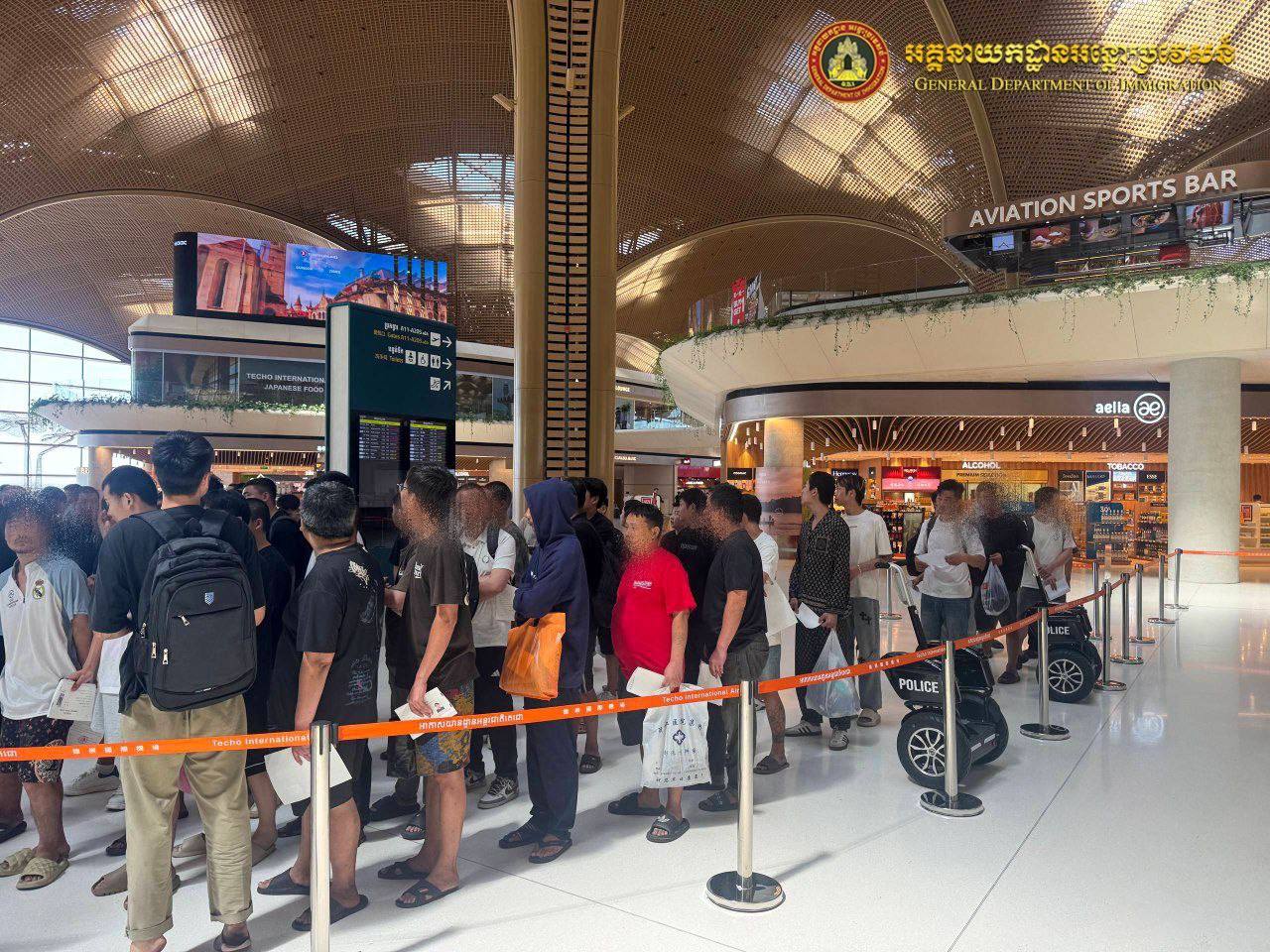 (ភ្នំពេញ)៖ នៅថ្ងៃទី៣ ខែកុម្ភៈ ឆ្នាំ២០២៦ អនុវត្តតាមអនុសាសន៍លោកអភិសន្តិបណ្ឌិត ស សុខា ឧបនាយករដ្ឋមន្ត្រី រដ្ឋមន្ត្រីក្រសួងមហាផ្ទៃ និងថ្នាក់ដឹកនាំក្រសួងមហាផ្ទៃ លោកឧត្តមសេនីយ៍ឯក សុខ វាសនា អគ្គនាយកអន្តោប្រវេសន៍ បានណែនាំឲ្យនាយកដ្ឋានស៊ើបអង្កេត និងអនុវត្តនីតិវិធី បន្តធ្វើការបណ្តេញជនបរទេសសរុបចំនួន៤២៨នាក់ (ស្រី៤នាក់) ចេញពីប្រទេសកម្ពុជា តាមប៉ុស្តិ៍នគរបាលច្រកទ្វារអាកាសយានដ្ឋានអន្តរជាតិតេជោ ដែលពាក់ព័ន្ធករណីលួចឆ្លងដែន ស្នាក់នៅធ្វើការងារខុសច្បាប់។