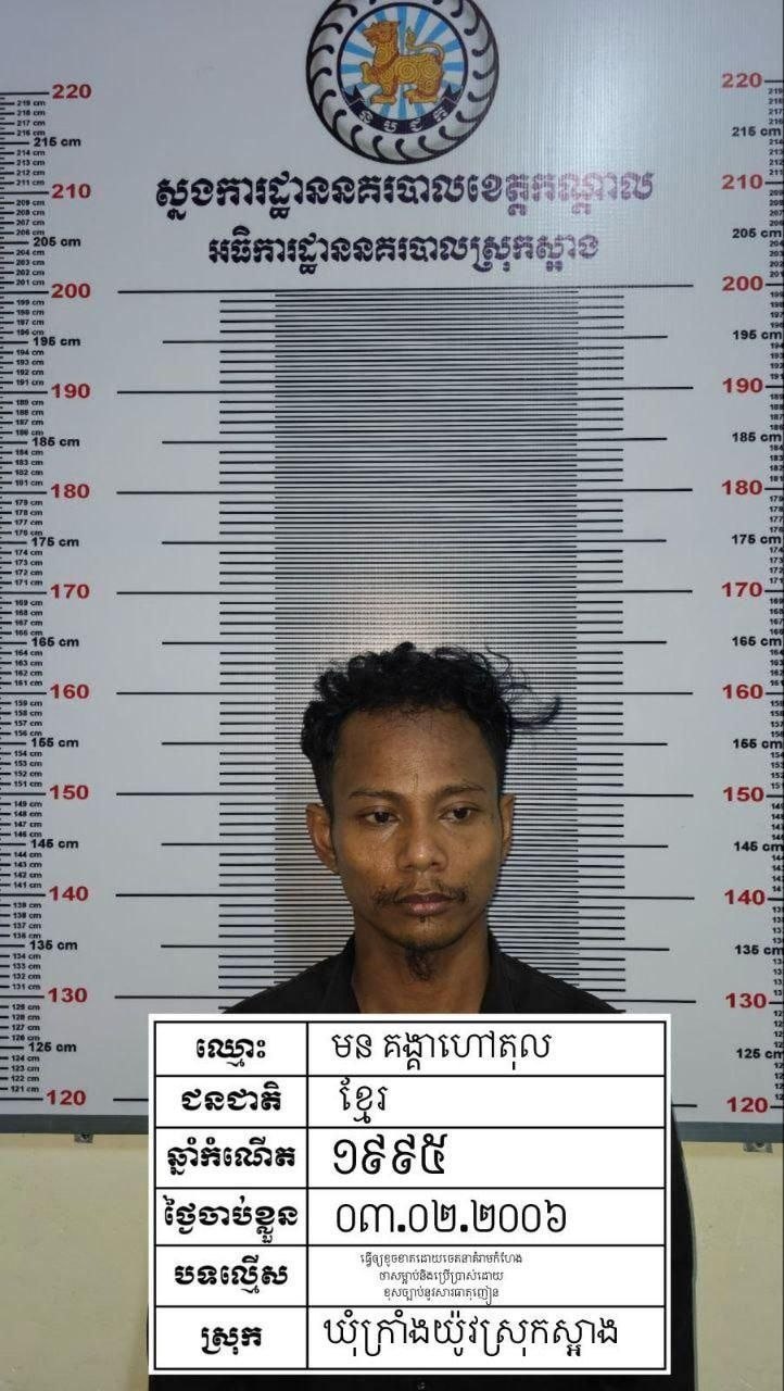 ឈ្មោះ មន គឹមលាង ភេទប្រុស អាយុ ២២ ឆ្នាំ ជនជាតិខ្មែរ មុខរបរ កសិករ(ត្រូវជាក្មួយ) ចំនែកជនសង្ស័យមានឈ្មោះ មន គង្គា (ត្រូវជាមា ) អាយុ៣១ឆ្នាំជនជាតិខ្មែរ មុខរបរ មិនពិតប្រាកដ វិជ្ជមាននូវសារធាតុញៀន (+) និងមានប្រវត្តិធ្លាប់ជាប់ពន្ធនាគារចំនួន០២លើក ករណីរក្សាទុកប្រើប្រាស់និងជួញដូរនូវសារធាតុញៀនដោយខុសច្បាប់ ដោយអ្នកទាំងពីរមានទីលំនៅជាមួយគ្នាក្នុងភូមិកណ្ដាល ឃុំ ក្រាំងយ៉ូវ ស្រុកស្អាង ខេត្តកណ្ដាល។