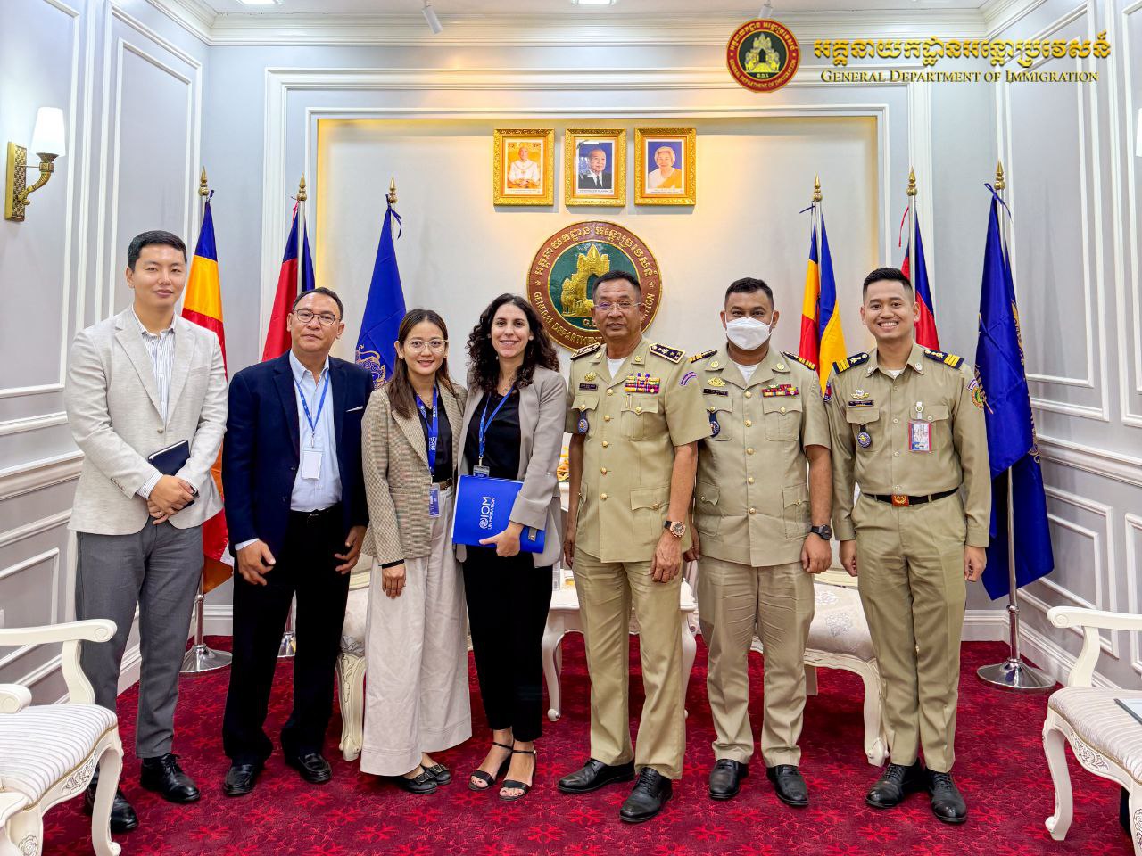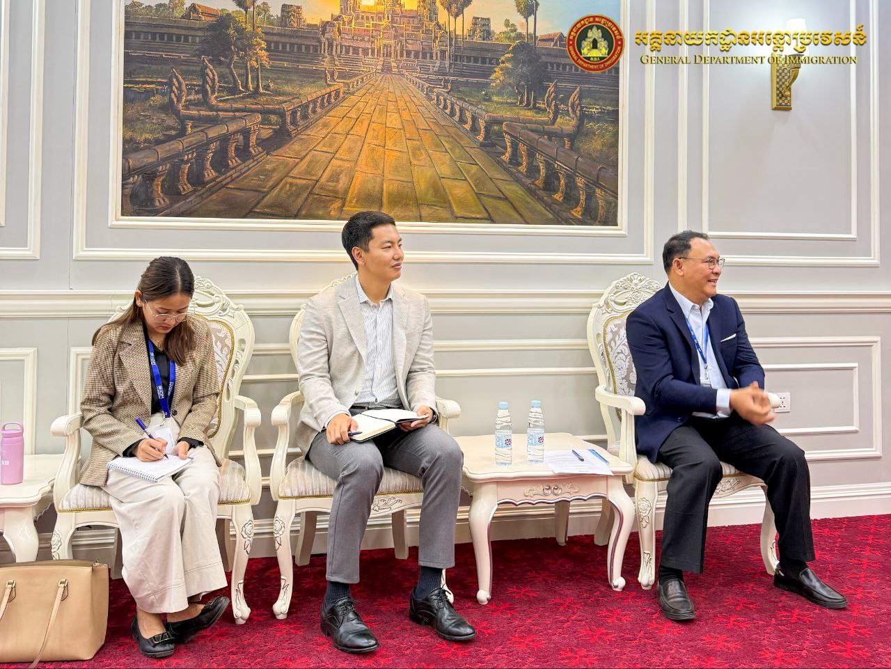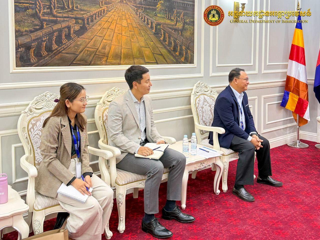 នាព្រឹកថ្ងៃព្រហស្បតិ៍ ៤រោច ខែមាឃ ឆ្នាំម្សាញ់ សប្ដស័ក ព.ស ២៥៦៩ ត្រូវនឹង ថ្ងៃទី៥ ខែកុម្ភៈ ឆ្នាំ២០២៦ ឯកឧត្តម ឧត្តមសេនីយ៍ឯក កែម សារិន អគ្គនាយករងអន្តោប្រវេសន៍ តំណាងដ៏ខ្ពង់ខ្ពស់ឯកឧត្តម ឧត្តមសេនីយ៍ឯក សុខ វាសនា អគ្គនាយកអន្តោប្រវេសន៍ បានជួបសម្តែងការគួរសមជាមួយនឹងលោកស្រី បេនីឌែតា ប៉ូស្ទីកលីអូនី តំណាងអង្គការអន្តរជាតិទេសន្តរប្រវេសន៍ IOM ដើម្បីពិភាក្សាការងារ។