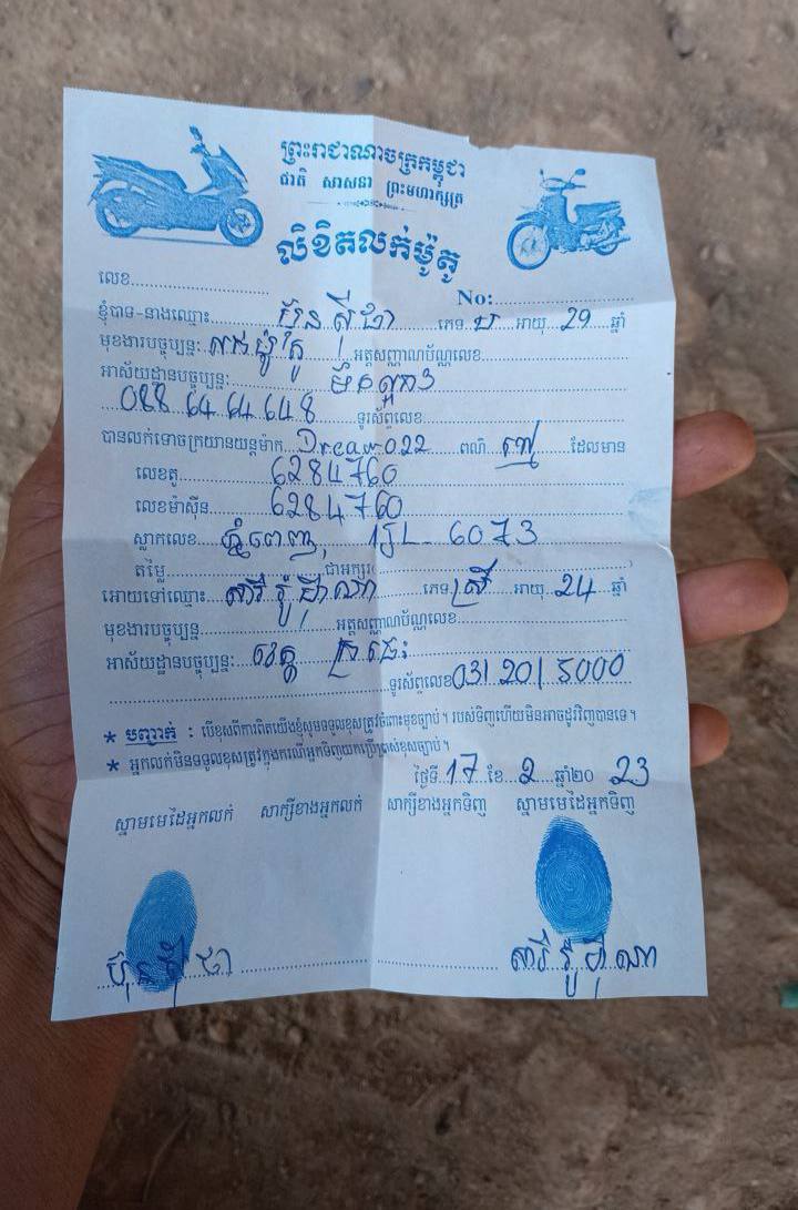 ស្រ្តីខ្មែរឥស្លាមរូបនេះ បានប្រាប់ភ្នាក់ងារព័ត៌មានថា គាត់ខំសន្សំលុយប្រមូលស្រូវលក់ទំរាំទិញបានម៉ូតូ១គ្រឿងខាងលើនេះ កាលពីថ្ងៃទី១៧ ខែកុម្ភៈ ឆ្នាំ២០២៣ ពីហាងលក់ម៉ូតូ១កន្លែងនៅឃ្លាំងឈ្មោះ ប៊ុន ស៊ីថា តម្លៃ១៩៨០ដុល្លារ ប៉ុន្តែម៉ូតូមួយគ្រឿងនេះជាម៉ូតូដែលគេកំពុងបង់រលស់ ហើយយកទៅដាក់បញ្ចាំ តែម្ចាស់ឃ្លាំងបែរយកម៉ូតូមួយគ្រឿងនេះ មកលក់ម៉ូតូឲ្យប្រជាពលរដ្ឋជាមួយការលួចធ្វើកាតគ្រីក្លែងក្លាយទៀតផង។
