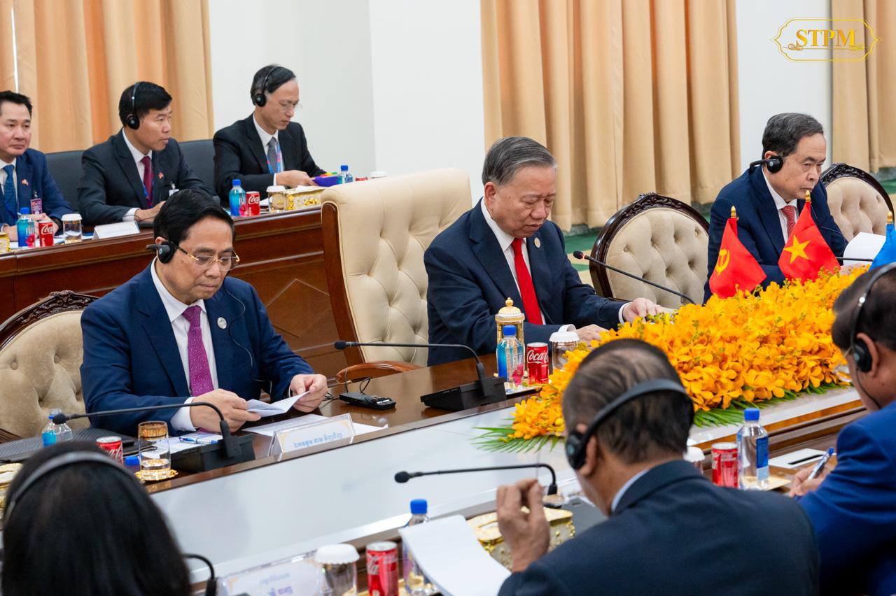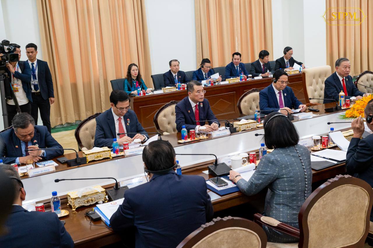 សម្តេចមហាបវរធិបតី ហ៊ុន ម៉ាណែត នាយករដ្ឋមន្ត្រីនៃព្រះរាជាណាចក្រកម្ពុជា ចូលរួមកិច្ចប្រជុំរវាងគណៈអចិន្ត្រៃយ៍នៃគណៈកម្មាធិការកណ្តាល គណបក្សប្រជាជនកម្ពុជា ដឹកនាំដោយ សម្តេច អគ្គមហាសេនាបតីតេជោ ហ៊ុន សែន ប្រធានគណបក្ស ជាមួយការិយាល័យមជ្ឈិមបក្សកុម្មុយនីស្តវៀតណាម ដឹកនាំដោយ ឯកឧត្តម តូ ឡឹម (TO Lam ) អគ្គលេខាធិការបក្សកុម្មុយនីស្តវៀតណាម នៅវិមាន៧មករា។