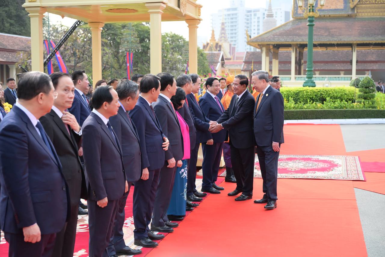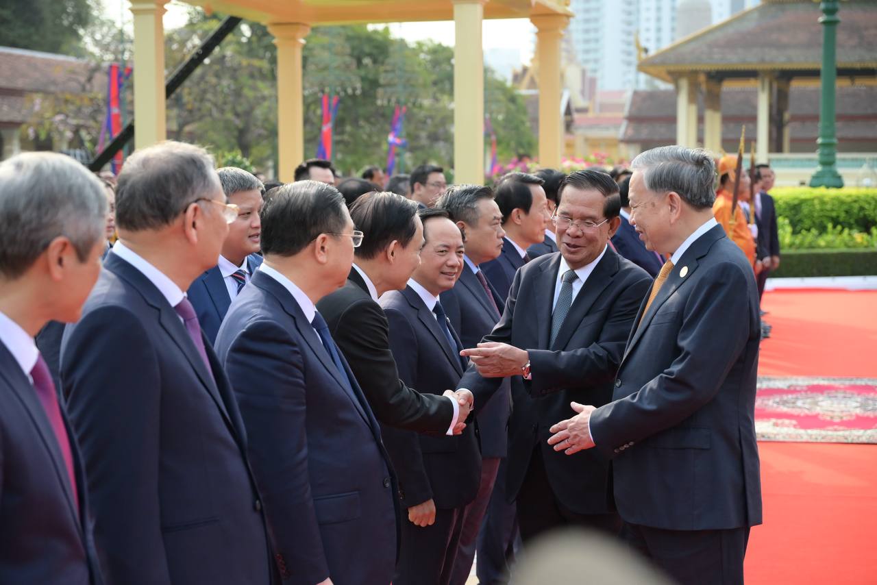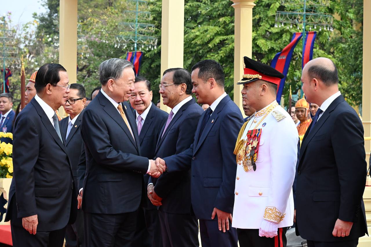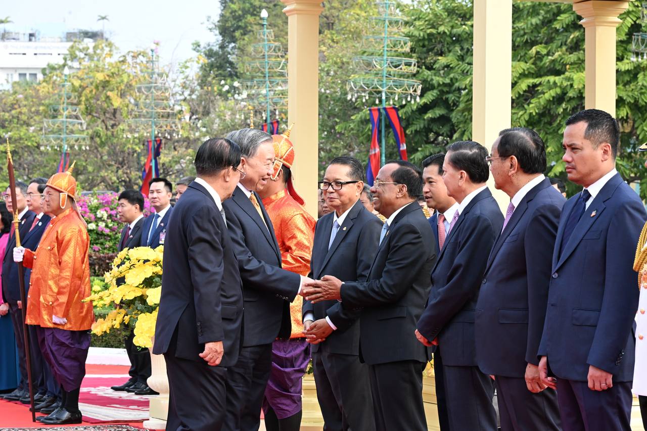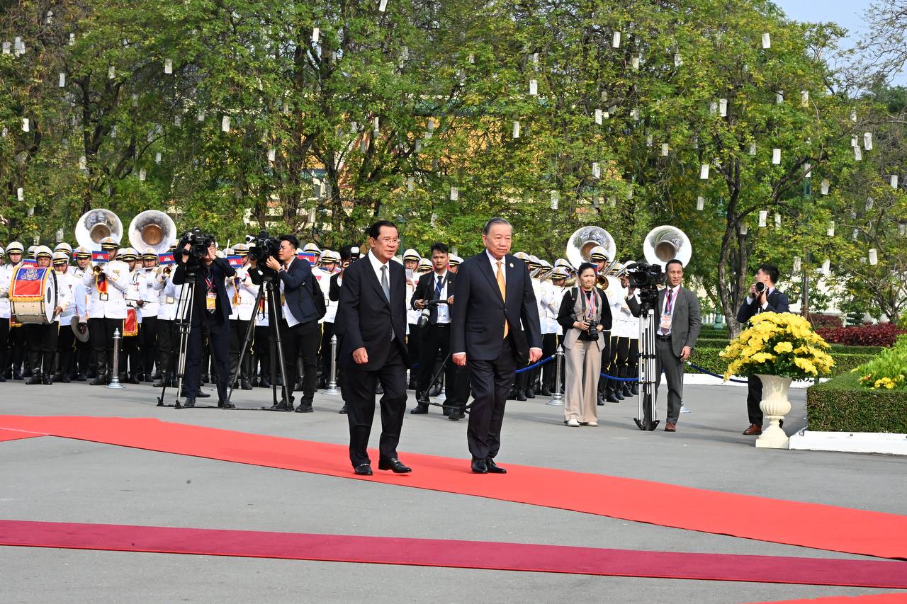 (ភ្នំពេញ)៖ នៅព្រះបរមរាជវាំង នាថ្ងៃសុក្រ ទី៦ ខែកុម្ភៈ ឆ្នាំ២០២៦នេះ សម្ដេចតេជោ ហ៊ុន សែន ប្រធានព្រឹទ្ធសភាកម្ពុជា បានអញ្ជើញជាព្រះរាជតំណាងដ៏ខ្ពង់ខ្ពស់បំផុត របស់ព្រះករុណា ព្រះបាទ សម្ដេចព្រះបរមនាថ នរោត្តម សីហមុនី ព្រះមហាក្សត្រនៃព្រះរាជាណាចក្រកម្ពុជា ទទួលបដិសណ្ឋារកិច្ចស្វាគមន៍ផ្លូវរដ្ឋជូនលោក តូ ឡឹម អគ្គលេខាធិការបក្សកុម្មុយនីស្តវៀតណាម ជាមួយនឹងជំនួបសាវនាកាផងដែរ។