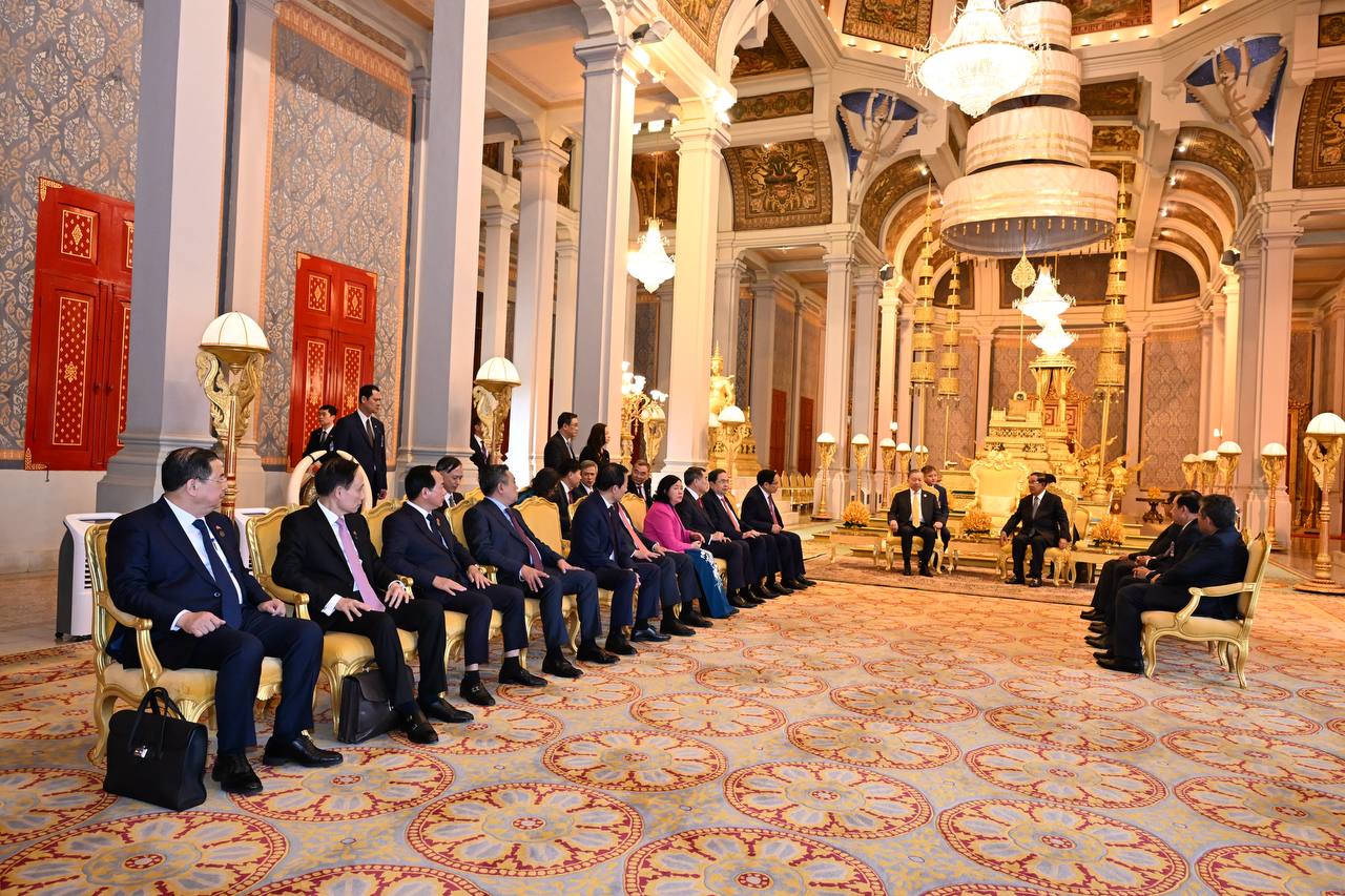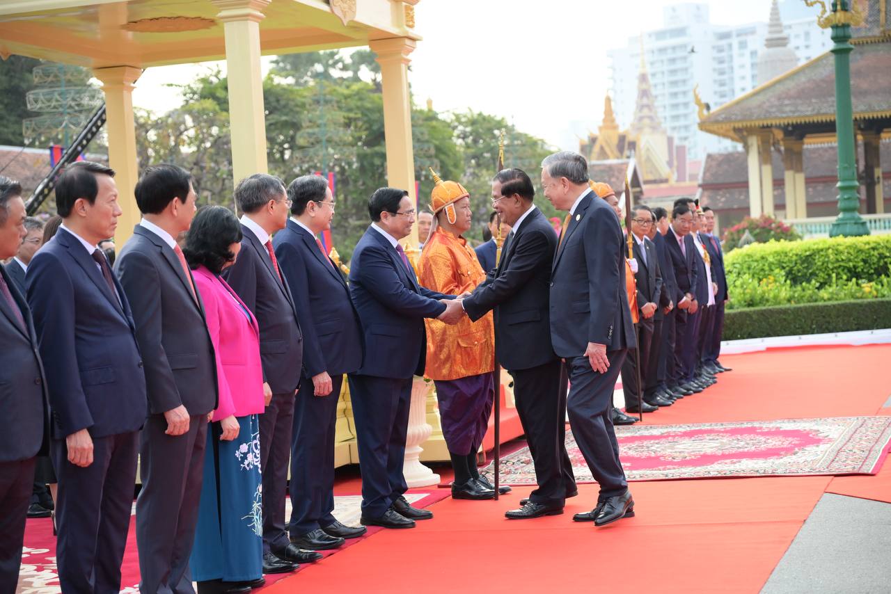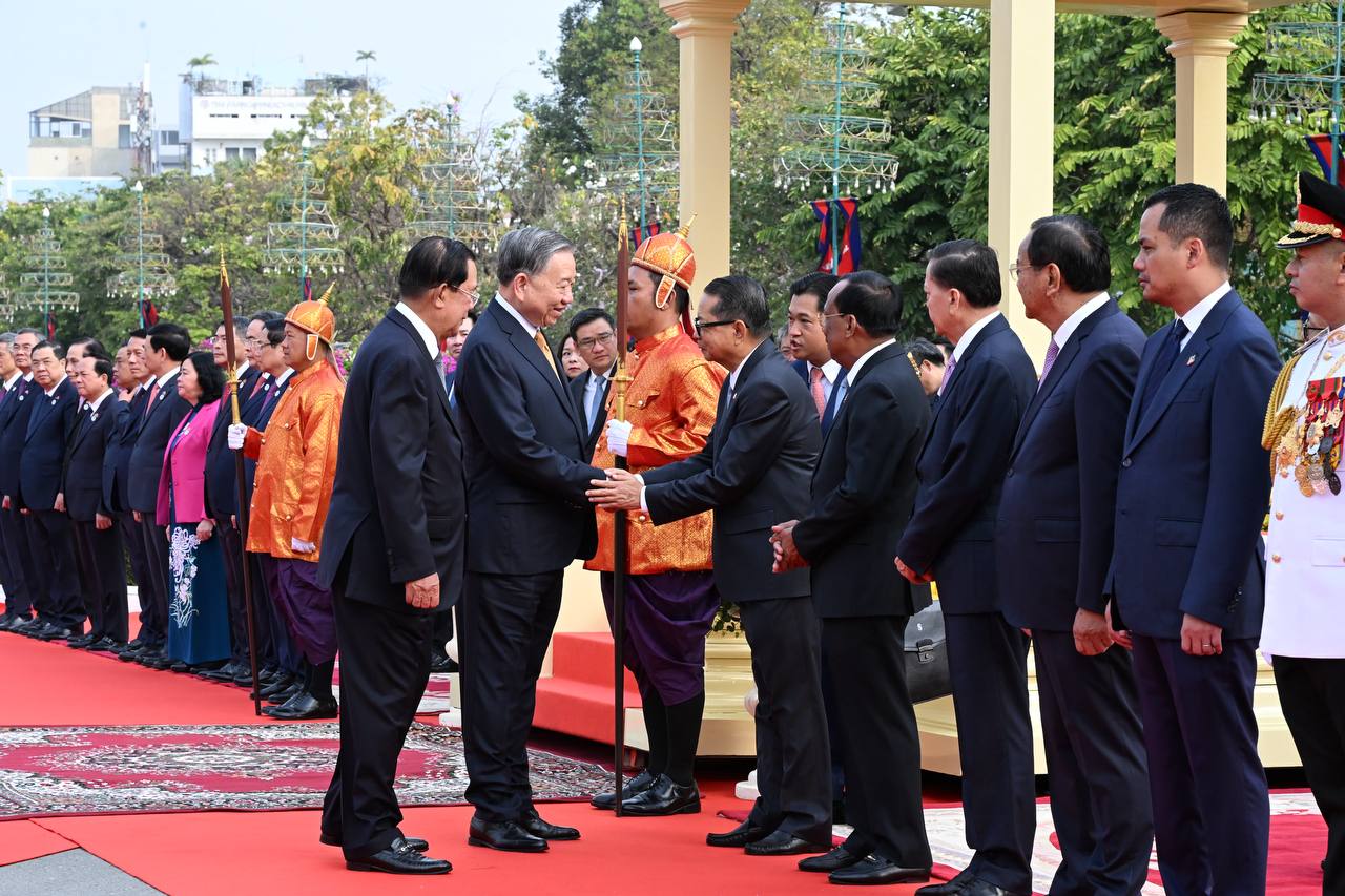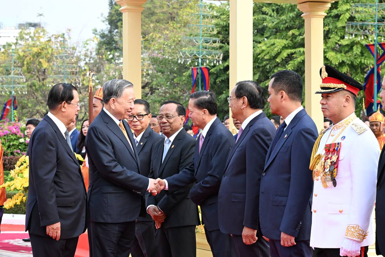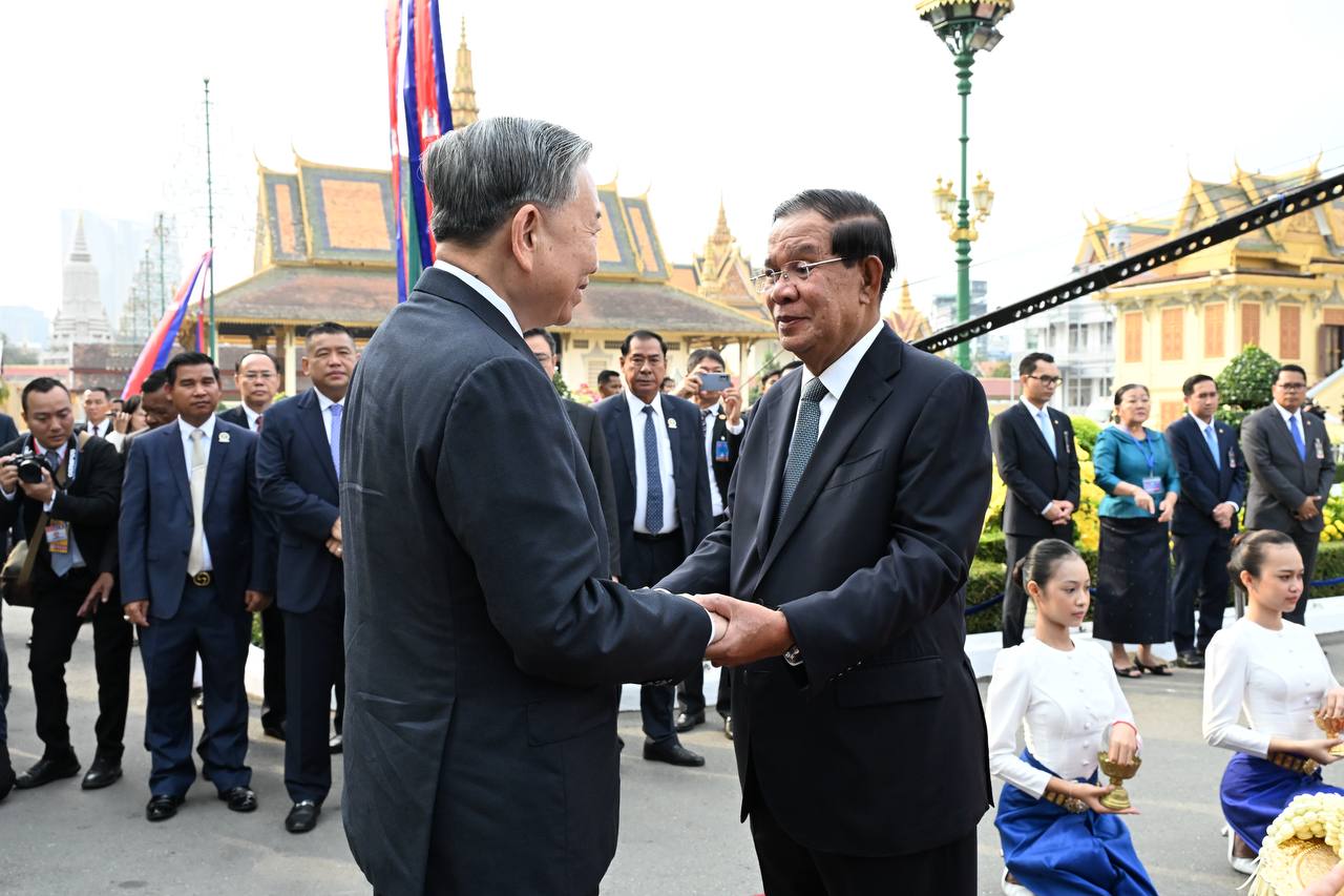 (ភ្នំពេញ)៖ នៅព្រះបរមរាជវាំង នាថ្ងៃសុក្រ ទី៦ ខែកុម្ភៈ ឆ្នាំ២០២៦នេះ សម្ដេចតេជោ ហ៊ុន សែន ប្រធានព្រឹទ្ធសភាកម្ពុជា បានអញ្ជើញជាព្រះរាជតំណាងដ៏ខ្ពង់ខ្ពស់បំផុត របស់ព្រះករុណា ព្រះបាទ សម្ដេចព្រះបរមនាថ នរោត្តម សីហមុនី ព្រះមហាក្សត្រនៃព្រះរាជាណាចក្រកម្ពុជា ទទួលបដិសណ្ឋារកិច្ចស្វាគមន៍ផ្លូវរដ្ឋជូនលោក តូ ឡឹម អគ្គលេខាធិការបក្សកុម្មុយនីស្តវៀតណាម ជាមួយនឹងជំនួបសាវនាកាផងដែរ។