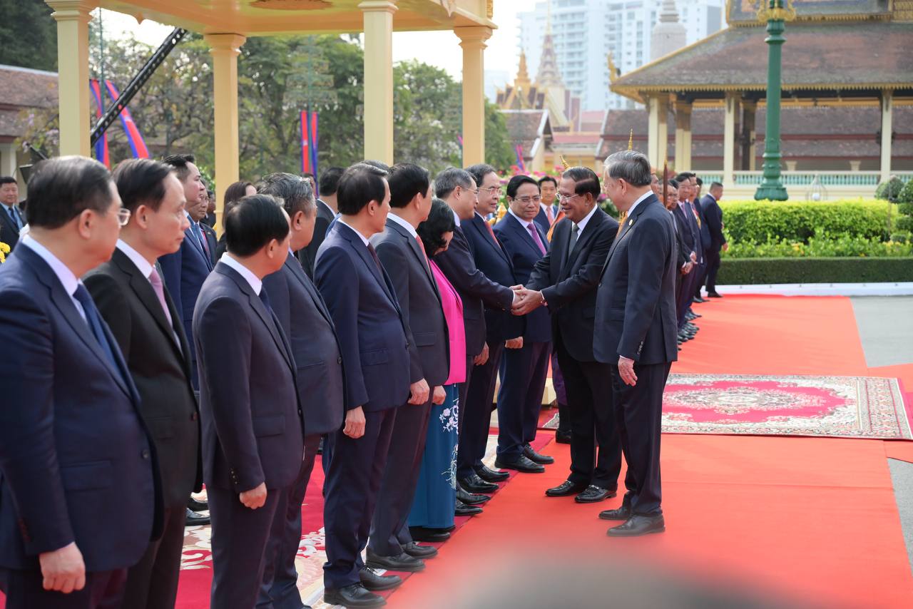 សម្ដេចតេជោ ហ៊ុន សែន អញ្ជើញជាព្រះរាជតំណាងដ៏ខ្ពង់ខ្ពស់ព្រះមហាក្សត្រ ទទួលបដិសណ្ឋារកិច្ចស្វាគមន៍ អគ្គលេខាធិការបក្សកុម្មុយនិស្តរដ្ឋវៀតណាម មកបំពេញទស្សនកិច្ចផ្លូវរដ្ឋនៅកម្ពុជា