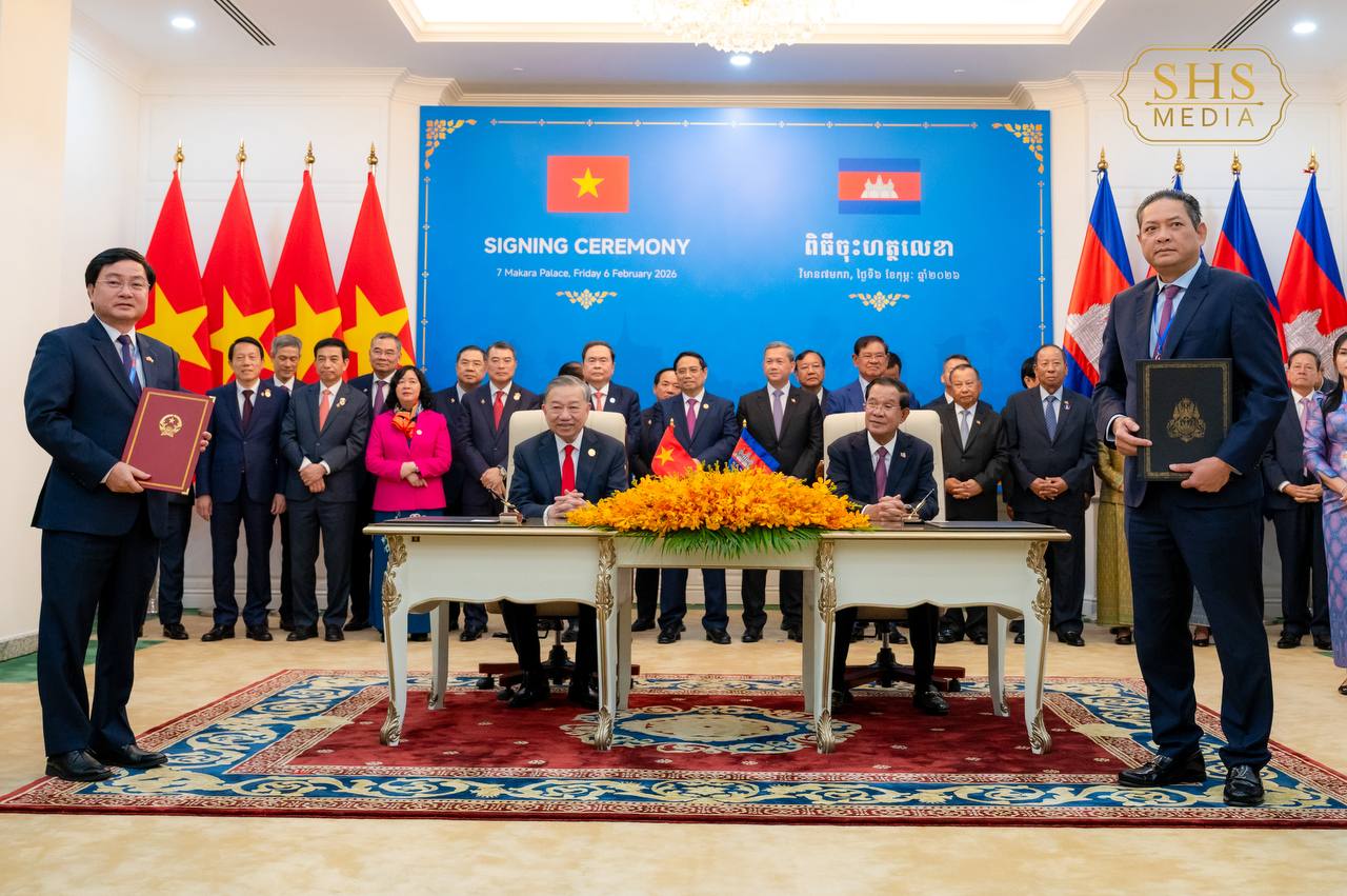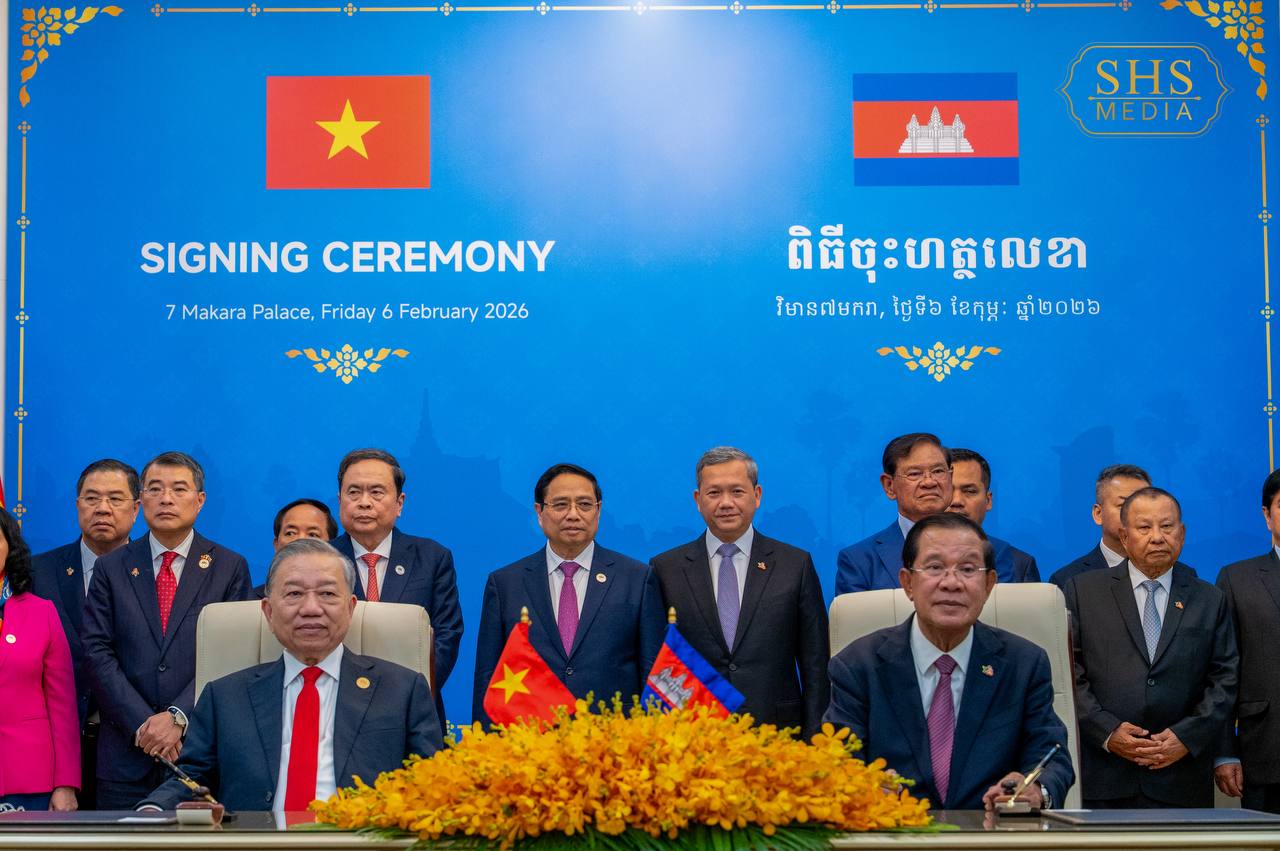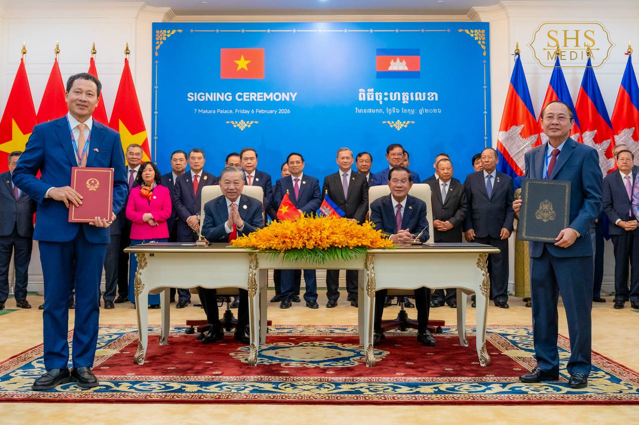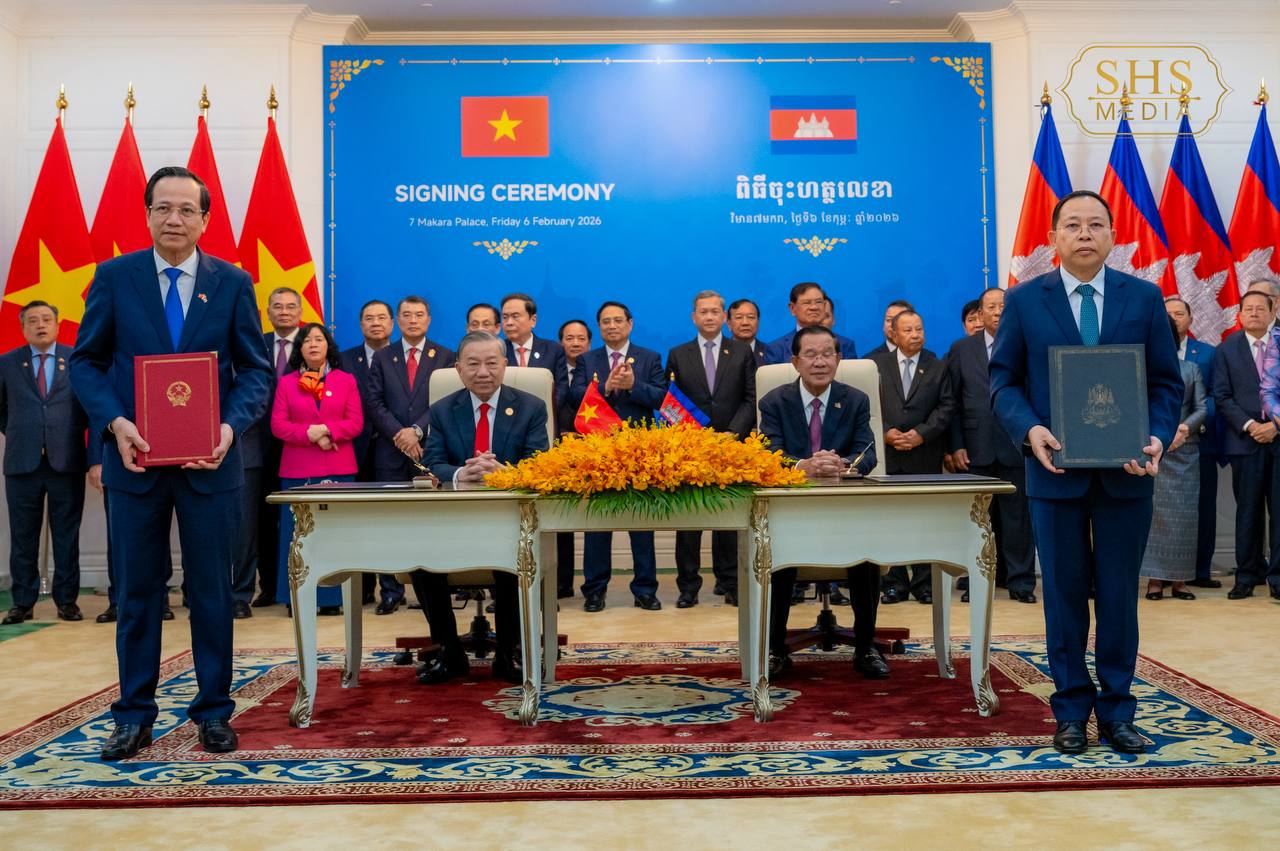សម្ដេចអគ្គមហាសេនាបតីតេជោ ហ៊ុន សែន ប្រធានគណបក្សប្រជាជនកម្ពុជា និង ឯកឧត្តម តូ ឡឹម អគ្គលេខាធិការបក្សកុម្មុយនីស្តវៀតណាម អញ្ជើញជាអធិបតីក្នុងពិធីចុះហត្ថលេខាលើអនុស្សរណៈនៃការយោគយល់រវាងគណៈទាក់ទងការបរទេស គណបក្សប្រជាជនកម្ពុជា និងគណៈកម្មាធិការបក្សក្រសួងការបរទេសវៀតណាម