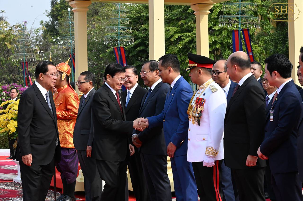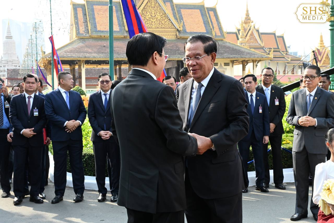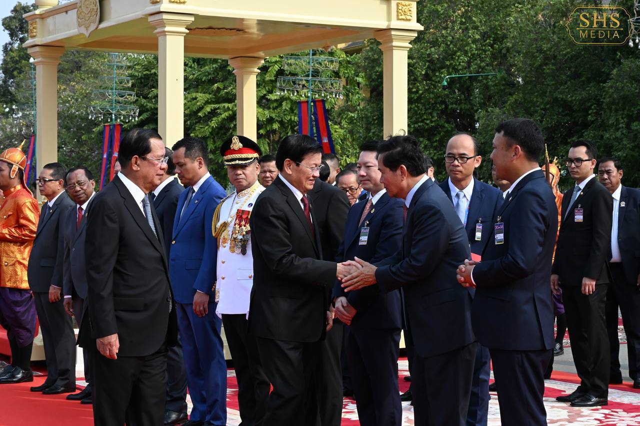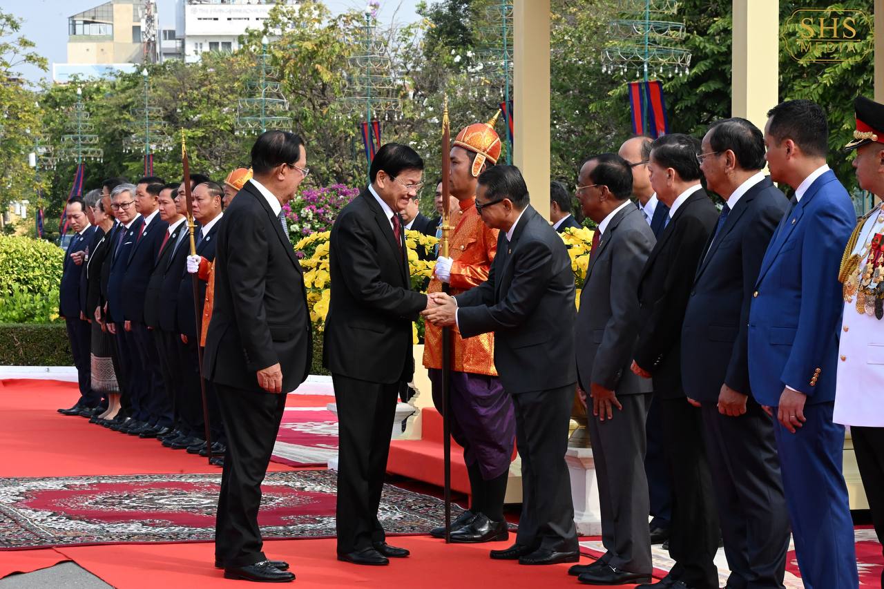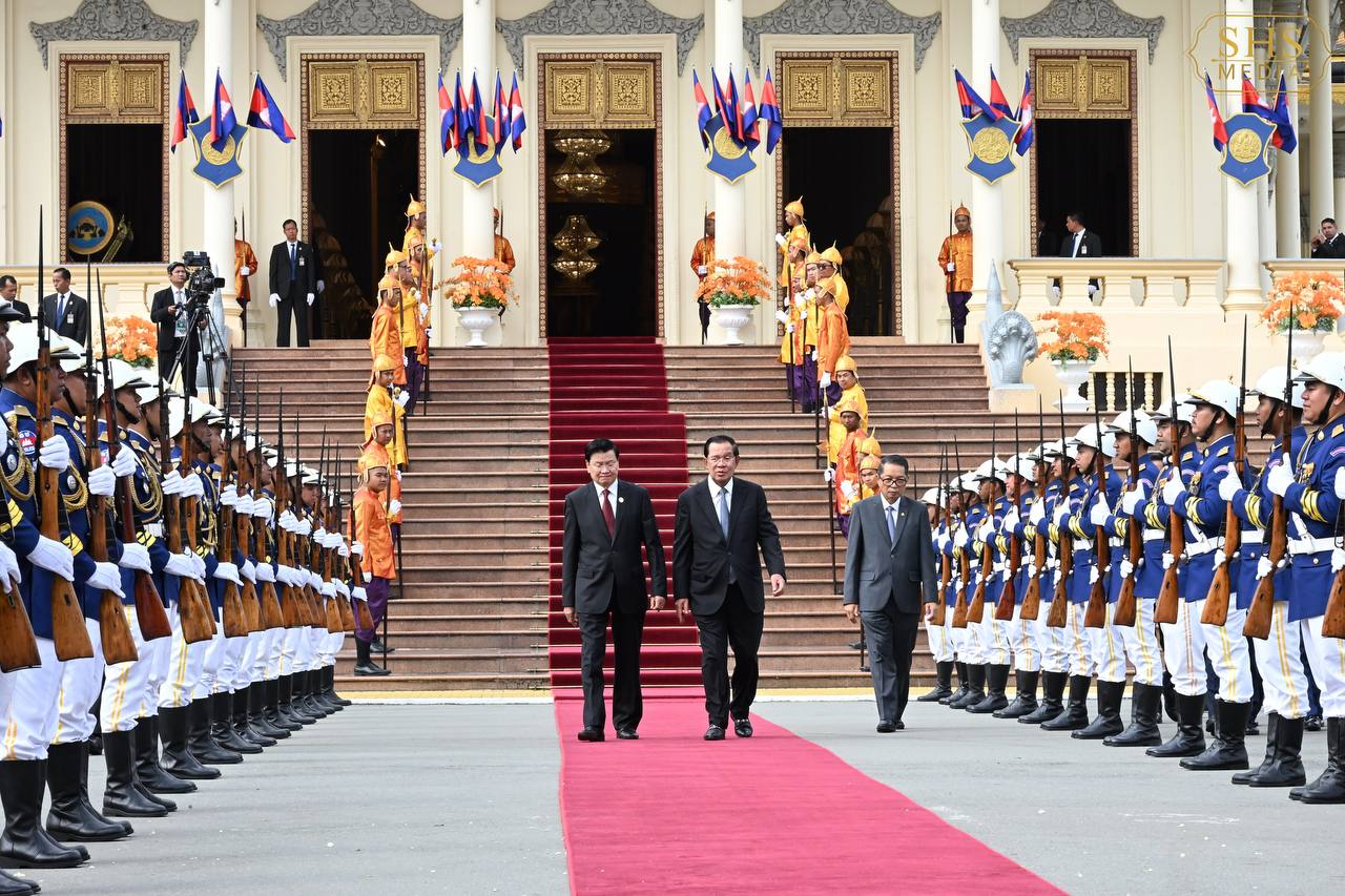 (ភ្នំពេញ)៖ នាព្រឹកថ្ងៃសៅរ៍ ទី៧ ខែកុម្ភៈ ឆ្នាំ២០២៦នេះ សម្ដេចតេជោ ហ៊ុន សែន ប្រធានព្រឹទ្ធសភាកម្ពុជា និងជាប្រធានគណបក្សប្រជាជនកម្ពុជា បានអញ្ជើញជាព្រះរាជតំណាងដ៏ខ្ពង់ខ្ពស់បំផុត របស់ព្រះករុណា ព្រះបាទ សម្ដេចព្រះបរមនាថ នរោត្តម សីហមុនី ព្រះមហាក្សត្រនៃព្រះរាជាណាចក្រកម្ពុជា ទទួលបដិសណ្ឋារកិច្ចស្វាគមន៍លោក ថងលុន ស៊ីសុលីត អគ្គលេខាធិការបក្សប្រជាជនបដិវត្តន៍ឡាវ និងជាប្រធានរដ្ឋឡាវ ក្នុងឱកាសដែលលោក និងគណៈប្រតិភូអញ្ជើញបំពេញទស្សនកិច្ចផ្លូវរដ្ឋនៅកម្ពុជារយៈពេលពីរថ្ងៃ។