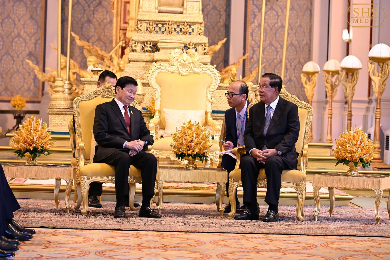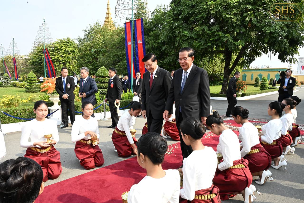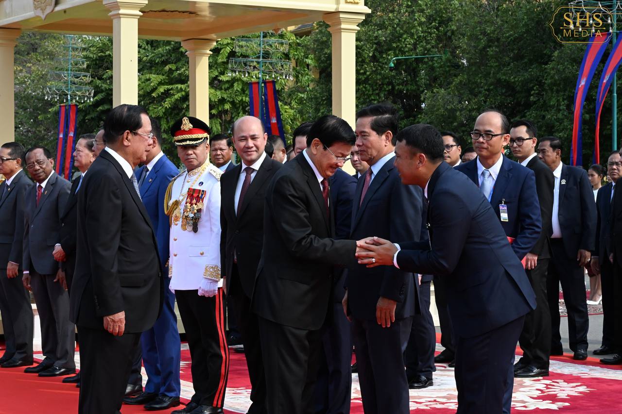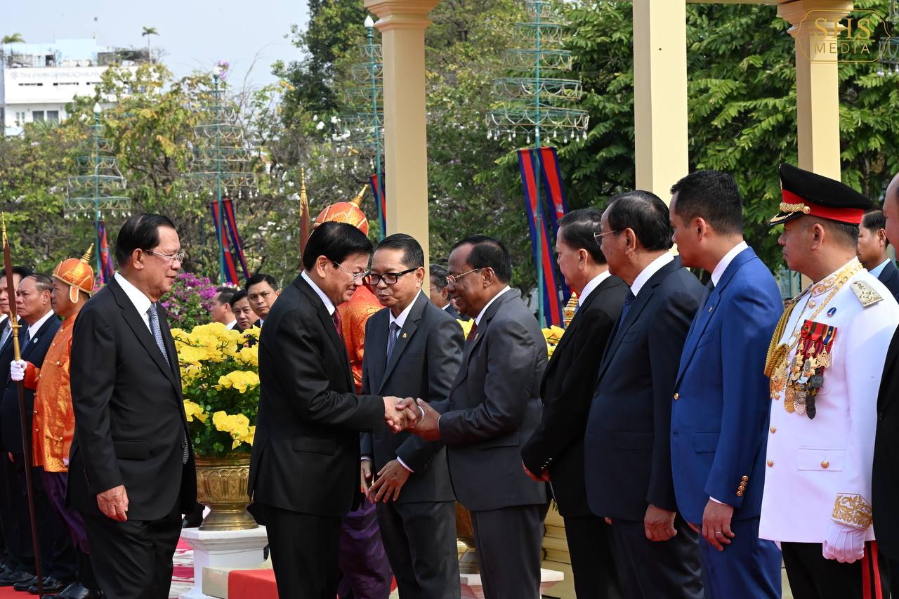 (ភ្នំពេញ)៖ នាព្រឹកថ្ងៃសៅរ៍ ទី៧ ខែកុម្ភៈ ឆ្នាំ២០២៦នេះ សម្ដេចតេជោ ហ៊ុន សែន ប្រធានព្រឹទ្ធសភាកម្ពុជា និងជាប្រធានគណបក្សប្រជាជនកម្ពុជា បានអញ្ជើញជាព្រះរាជតំណាងដ៏ខ្ពង់ខ្ពស់បំផុត របស់ព្រះករុណា ព្រះបាទ សម្ដេចព្រះបរមនាថ នរោត្តម សីហមុនី ព្រះមហាក្សត្រនៃព្រះរាជាណាចក្រកម្ពុជា ទទួលបដិសណ្ឋារកិច្ចស្វាគមន៍លោក ថងលុន ស៊ីសុលីត អគ្គលេខាធិការបក្សប្រជាជនបដិវត្តន៍ឡាវ និងជាប្រធានរដ្ឋឡាវ ក្នុងឱកាសដែលលោក និងគណៈប្រតិភូអញ្ជើញបំពេញទស្សនកិច្ចផ្លូវរដ្ឋនៅកម្ពុជារយៈពេលពីរថ្ងៃ។