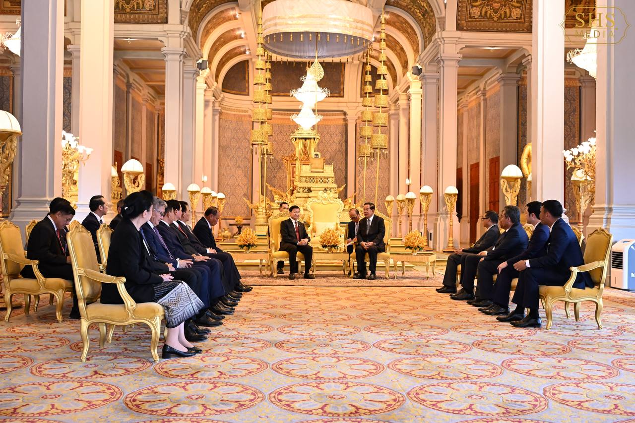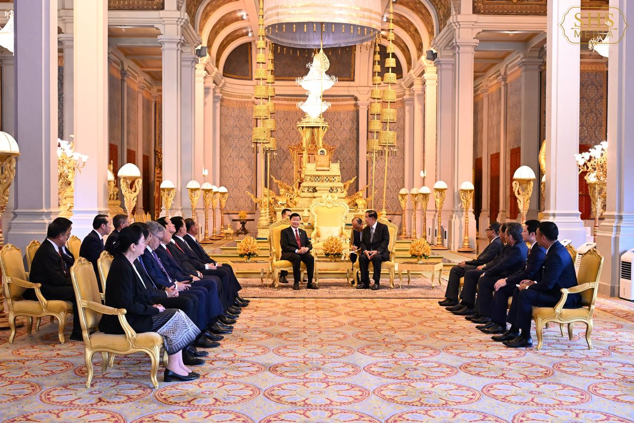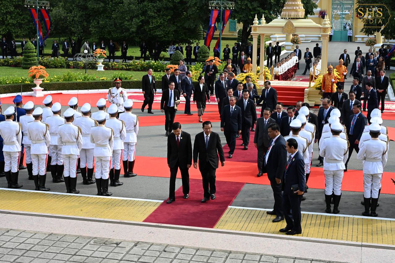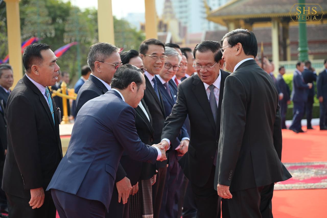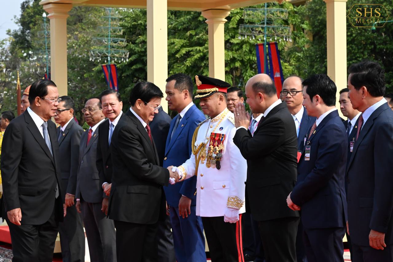 (ភ្នំពេញ)៖ នាព្រឹកថ្ងៃសៅរ៍ ទី៧ ខែកុម្ភៈ ឆ្នាំ២០២៦នេះ សម្ដេចតេជោ ហ៊ុន សែន ប្រធានព្រឹទ្ធសភាកម្ពុជា និងជាប្រធានគណបក្សប្រជាជនកម្ពុជា បានអញ្ជើញជាព្រះរាជតំណាងដ៏ខ្ពង់ខ្ពស់បំផុត របស់ព្រះករុណា ព្រះបាទ សម្ដេចព្រះបរមនាថ នរោត្តម សីហមុនី ព្រះមហាក្សត្រនៃព្រះរាជាណាចក្រកម្ពុជា ទទួលបដិសណ្ឋារកិច្ចស្វាគមន៍លោក ថងលុន ស៊ីសុលីត អគ្គលេខាធិការបក្សប្រជាជនបដិវត្តន៍ឡាវ និងជាប្រធានរដ្ឋឡាវ ក្នុងឱកាសដែលលោក និងគណៈប្រតិភូអញ្ជើញបំពេញទស្សនកិច្ចផ្លូវរដ្ឋនៅកម្ពុជារយៈពេលពីរថ្ងៃ។