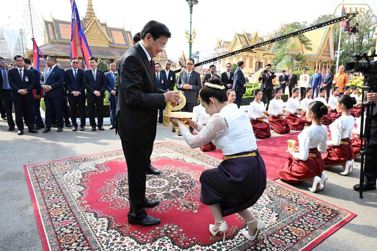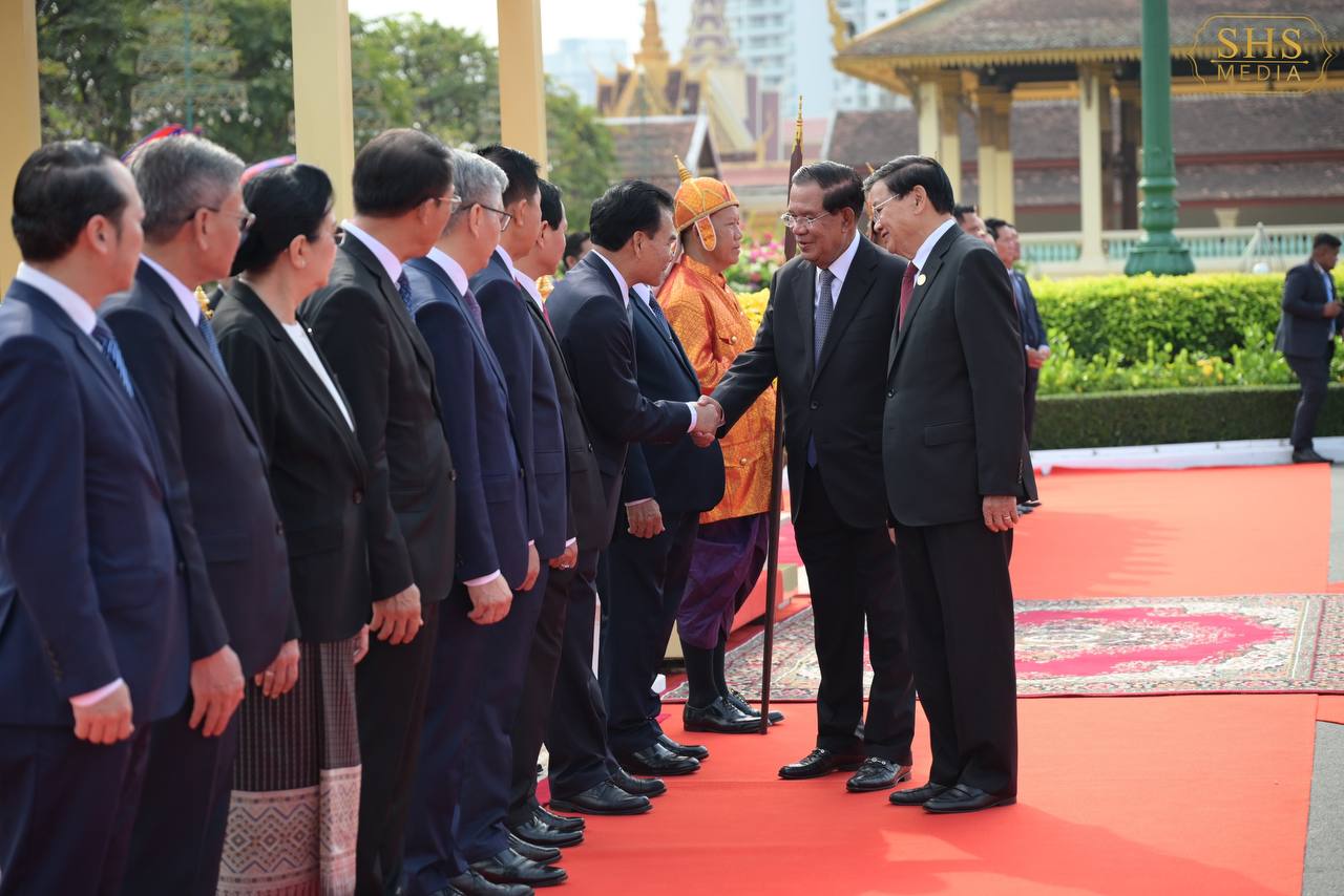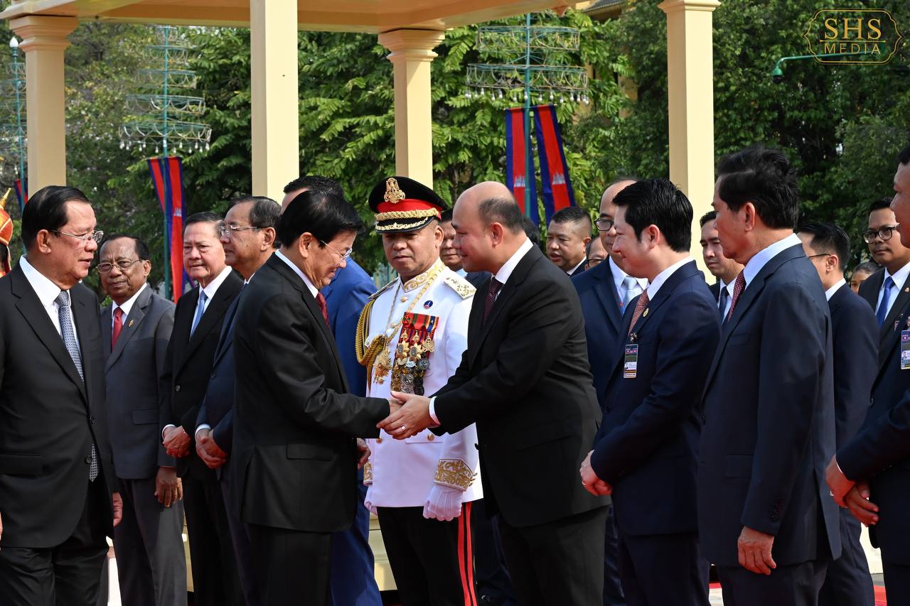សម្ដេចតេជោ ហ៊ុន សែន អញ្ជើញជាព្រះរាជតំណាងដ៏ខ្ពង់ខ្ពស់ព្រះមហាក្សត្រ ទទួលបដិសណ្ឋារកិច្ចស្វាគមន៍អគ្គលេខាធិការបក្សប្រជាជនបដិវត្តន៍ឡាវ និងជាប្រធានរដ្ឋឡាវ