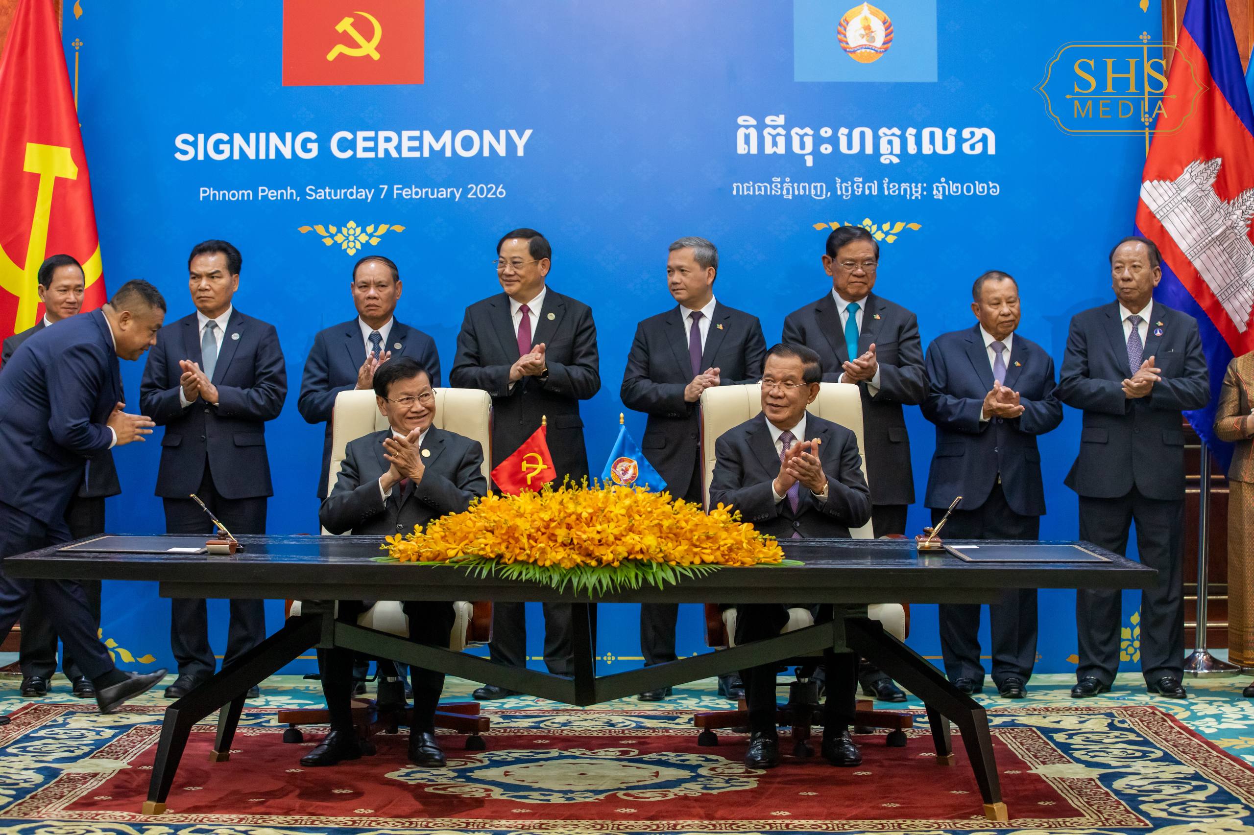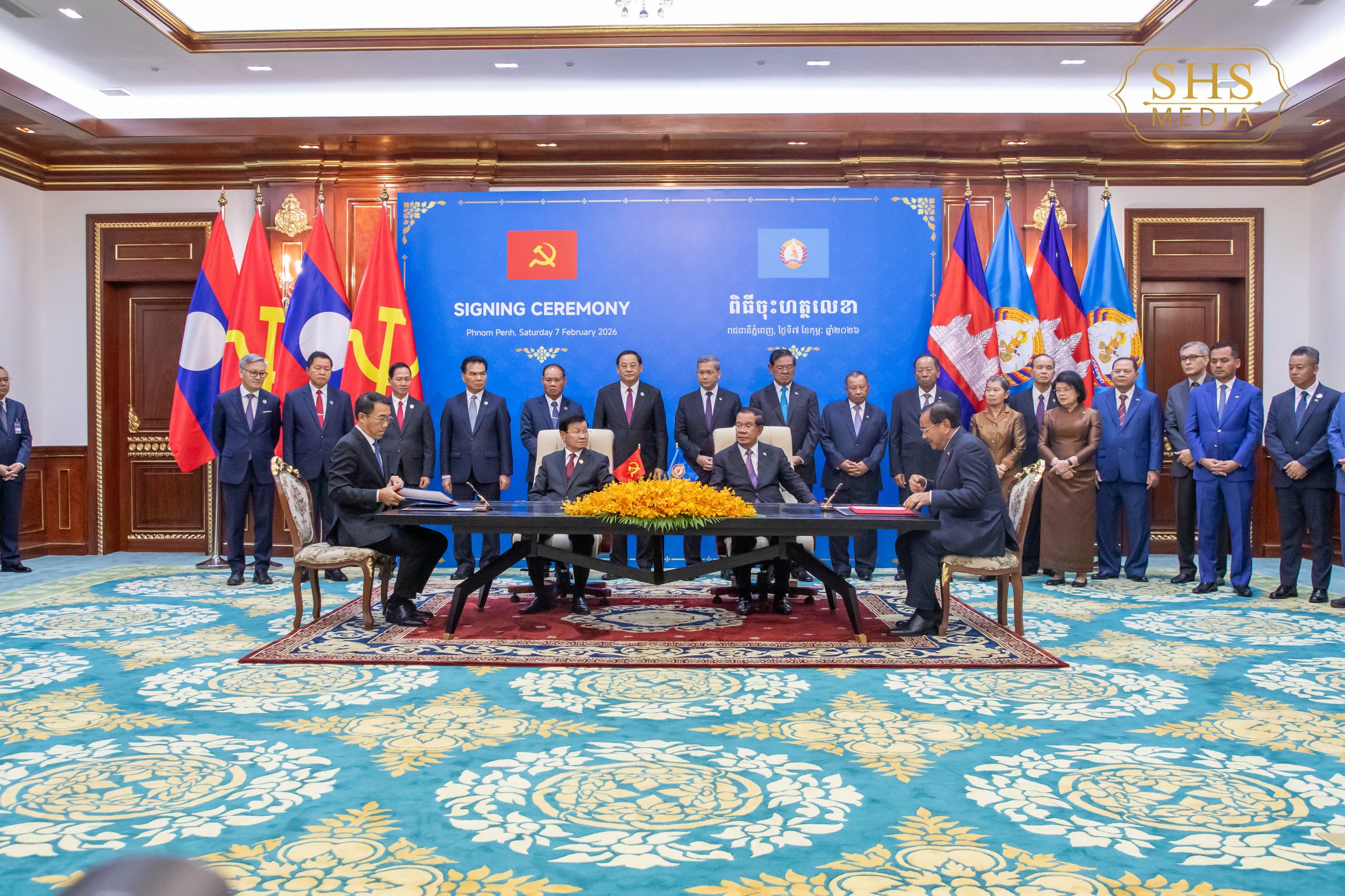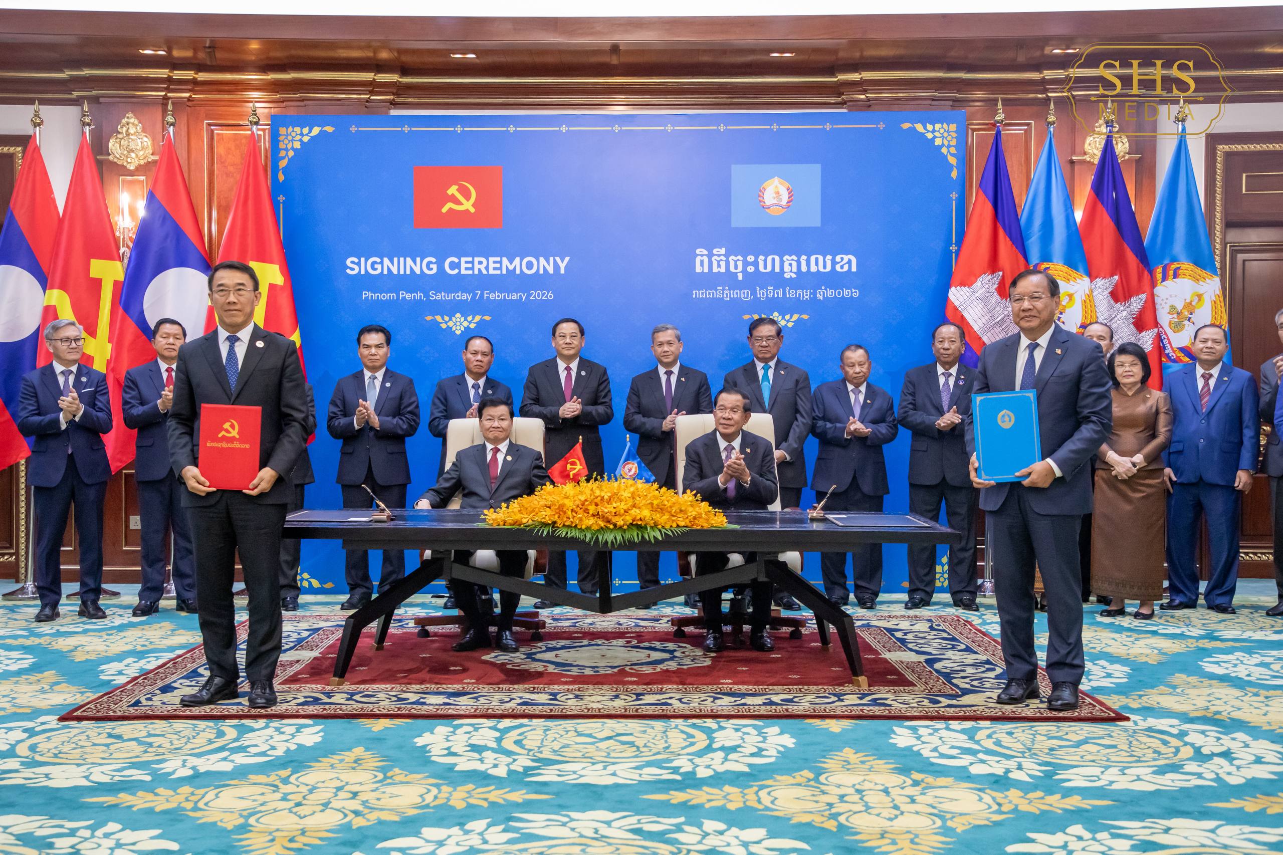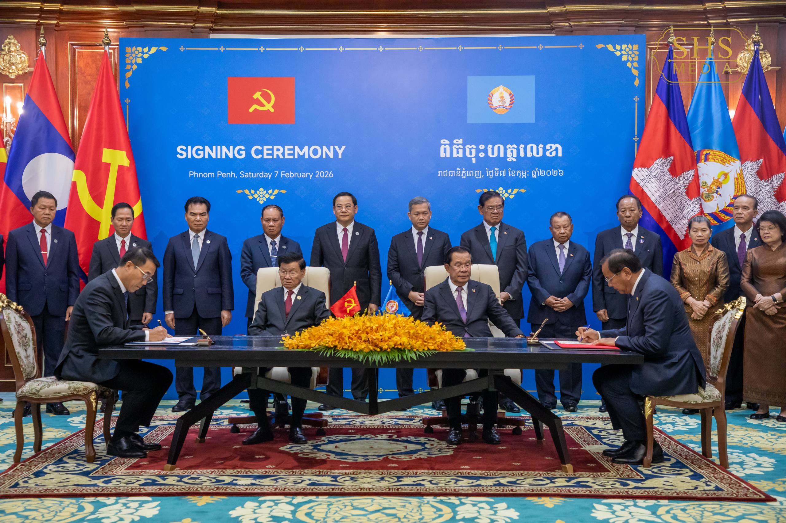សម្ដេចអគ្គមហាសេនាបតីតេជោ ហ៊ុន សែន ប្រធានព្រឹទ្ធសភានៃព្រះរាជាណាចក្រកម្ពុជា និងជាប្រធានគណបក្សប្រជាជនកម្ពុជា និង ឯកឧត្តមបណ្ឌិត ថងលុន ស៊ីសុលីត(Thongloun Sisoulith) អគ្គលេខាធិការបក្សប្រជាជនបដិវត្តន៍ឡាវ និងជាប្រធានរដ្ឋនៃសាធារណរដ្ឋប្រជាធិបតេយ្យប្រជាមានិតឡាវ អញ្ជើញជាអធិបតីក្នុងពិធីចុះហត្ថលេខាលើកំណត់ហេតុកិច្ចប្រជុំកំពូលលើកទី១៦ រវាងគណបក្សទាំងពីរ។