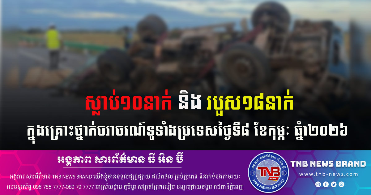 ស្លាប់១០នាក់ និងរបួស១៨នាក់ ក្នុងគ្រោះថ្នាក់ចរាចរណ៍ទូទាំងប្រទេសថ្ងៃទី៨ ខែកុម្ភៈ ឆ្នំា២០២៦