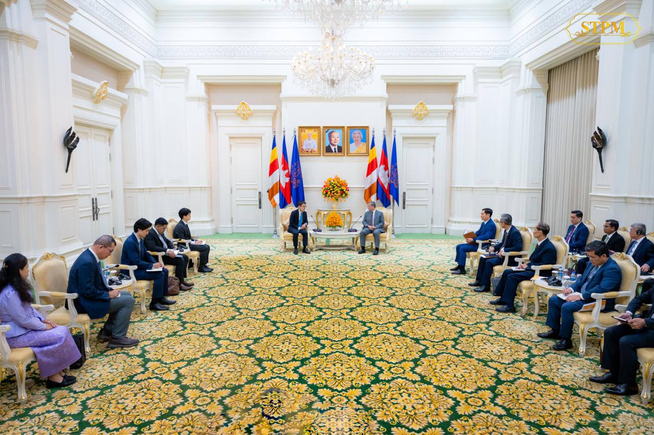 សម្តេចមហាបវរធិបតី ហ៊ុន ម៉ាណែត ជួបជាមួយ លោក Tetsuya Watanabe ប្រធានវិទ្យាស្ថានស្រាវជ្រាវសេដ្ឋកិច្ចអាស៊ាន និងអាស៊ីបូព៌ា (Economic Research Institute for ASEAN and East Asia-ERIA) ក្នុងជំនួបសម្តែងការគួរសម និងពិភាក្សាការងារ នៅវិមានសន្តិភាព។ On Feb 9, 2026 រាជធានីភ្នំពេញ ព្រឹកថ្ងៃចន្ទ ទី៩ កុម្ភៈ ២០២៦