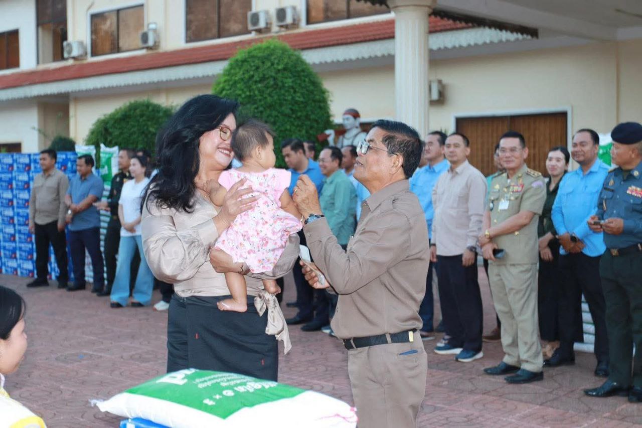 (រតនគិរី)៖ លោក ញ៉ែម សំអឿន អភិបាលខេត្តរតនគិរី និងលោកស្រី បានរៀបចំពិធីចែកអំណោយសប្បុរសធម៌ ជូនជនភៀសសឹកចំនួន៩៥គ្រួសារ ក្នុងទីធ្លាសាលាខេត្តរតនគិរី នារសៀលថ្ងៃទី៨ ខែកុម្ភៈ ឆ្នាំ២០២៦។