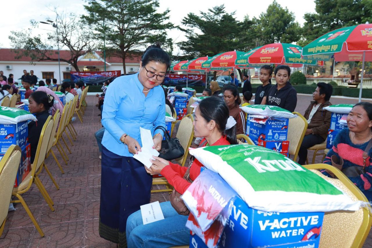 សូមបញ្ជាក់ជូនថា អំណោយដែលបានចែកជូនពលរដ្ឋភៀសសឹកទាំង៩៥ គ្រួសារនាពេលនេះ គឺជាអំណោយសប្បុរសធម៌ របស់អ្នកឧកញ៉ា សំអាង វឌ្ឍនៈអគ្គនាយកក្រុមហ៊ុនវឌ្ឍនៈ ប៊្រូវើរី ដោយ១គ្រួសារទទួលបាន អង្ករ១០គីឡូក្រាម, ថវិកា៧ម៉ឺនរៀល, ទឹកសុទ្ធវីអាក់ទីវ១កេស, ទឹកប៊ីកូឡា១កេស។ រីឯសិស្សភៀសសឹក ដែលមកចុះឈ្មោះចូលរៀន នៅក្នុងខេត្តរតនគិរី សរុបចំនួន៦៣នាក់ (ស្រី ២៨នាក់) ក្នុងម្នាក់៣ម៉ឺនរៀល។