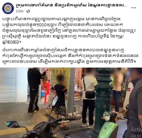 ចំពោះរឿងនេះ នៅថ្ងៃទី ១០ ខែកុម្ភៈ ឆ្នាំ ២០២៦ នេះ ក្រុមការងារព័ត៌មាន និង ប្រតិកម្មរហ័ស ស្នងការដ្ឋាននគរបាលរាជធានីភ្នំពេញ បានបញ្ជាក់ឱ្យបានដឹងថា ក្រុមការងារទទួលបានព័ត៌មានហើយ បន្ទាប់ពីមានការផ្សព្វផ្សាយតាមបណ្តាញសង្គម មានករណីលួចក្លែងបន្លំយកលុយចំនួន ១០០០ ដុល្លារ ពីភ្ញៀវជាជនជាតិបរទេស ដោយដាក់ជំនួសលុយដុល្លារសែនជូនភ្ញៀវវិញ នៅក្នុងហាងម៉ាស្សាមួយកន្លែង ចំណុចផ្លូវព្រះស៊ីសុវត្ថិ សង្កាត់ជ័យជំនះ ខណ្ឌដូនពេញ កាលពីយប់ថ្ងៃទី ០៩ ខែកុម្ភៈ ឆ្នាំ២០២៦។