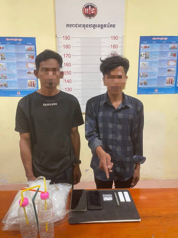 ក្នុងប្រតិបត្តិការបង្ក្រាប កម្លាំងជំនាញបានឃាត់ខ្លួនជនសង្ស័យឈ្មោះ ងន វណ្ណះ ភេទប្រុស អាយុ២០ឆ្នាំ ជនជាតិខ្មែរ មុខរបរមិនពិតប្រាកដ រស់នៅភូមិ ខ្លោងទ្វា ឃុំរនាម ស្រុកទ្រាំង ខេត្តតាកែវ។ និងឈ្មោះ ទុំ ចាន់ធី ភេទប្រុស អាយុ៤១ឆ្នាំ ជនជាតិខ្មែរ មុខរបរមិនពិតប្រាកដ រស់នៅភូមិ ខ្លោងទ្វា ឃុំរនាម ស្រុកទ្រាំង ខេត្តតាកែវ។