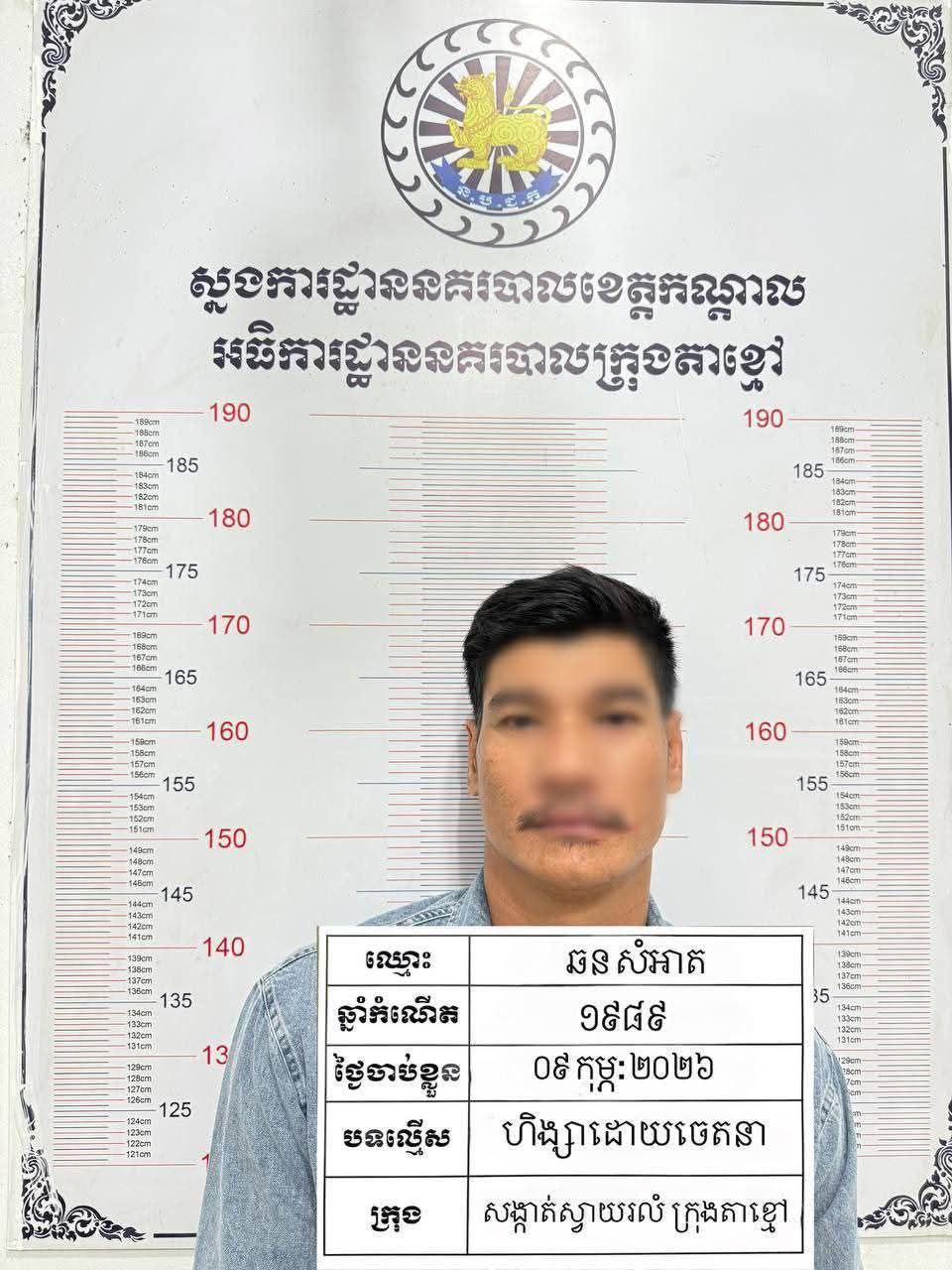ខេត្តកណ្តាល៖ នគរបាលឃាត់ខ្លួនបុរសជាជនសង្ស័យម្នាក់ករណីស្រវឹងស្រាហើយជេរបញ្ចោ និងហិង្សាធ្វើឱ្យខូចខាតទ្រព្យសម្បត្តិអ្នកក្បែរខាង។ ហេតុការណ៍បានកើតឡើងនៅ ថ្ងៃទី០៩ ខែកុម្ភ: ឆ្នាំ ២០២៦ នៅចំណុចបន្ទប់ជួលរបស់ជនរងគ្រោះស្ថិតក្នុងភូមិលេខ(៣) សង្កាត់ស្វាយរលំ ក្រុងតាខ្មៅ ខេត្តកណ្តាល។