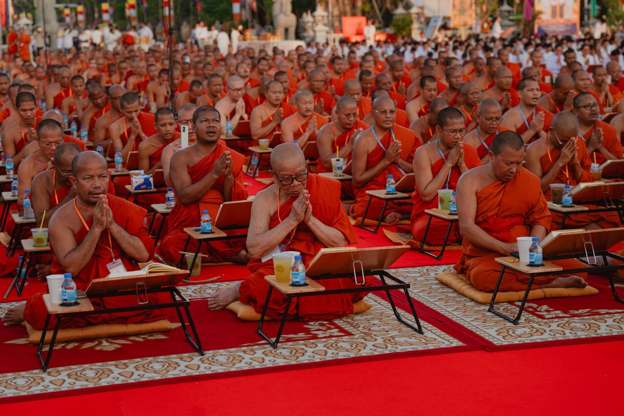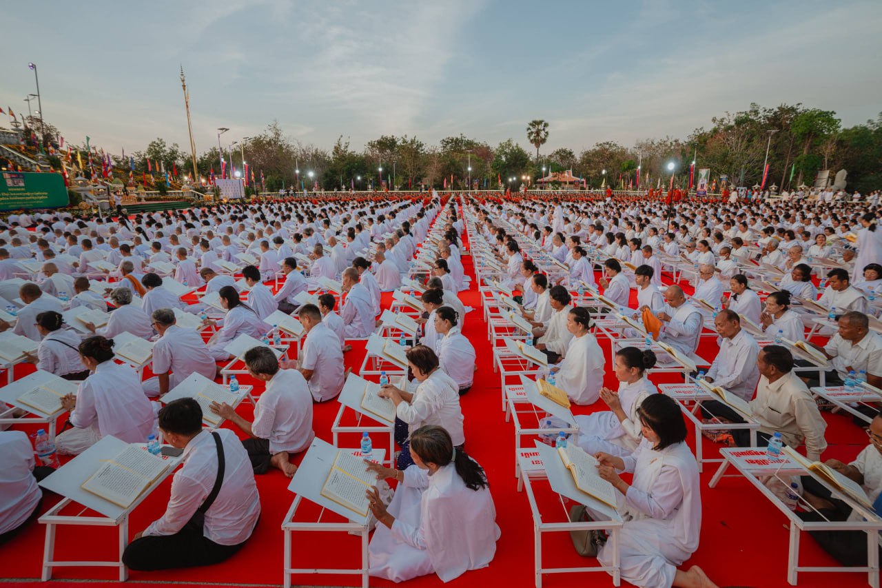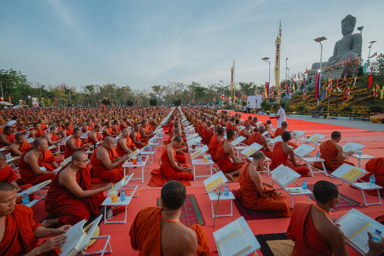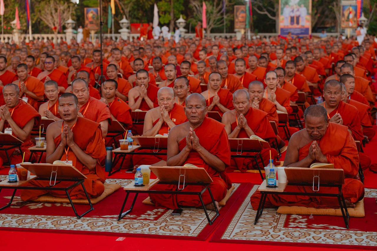 សម្តេចព្រះអភិសិរីសុគន្ធាមហាសង្ឃរាជាធិបតី បួរ គ្រី សម្ដេចព្រះមហាសង្ឃរាជ គណៈធម្មយុត្តិកនិកាយនៃព្រះរាជាណាចក្រកម្ពុជា និងឯកឧត្តម ចាយ បូរិន រដ្ឋមន្ត្រីក្រសួងធម្មការ និងសាសនា រួមជាមួយថ្នាក់ដឹកនាំគណសង្ឃ និងព្រះសង្ឃទាំងពីរគណៈ ព្រមទាំងពុទ្ធបរិស័ទជាច្រើនរូប យាង និងអញ្ជើញជាអធិបតី ព្រមទាំងនិមន្ត និងចូលរួម ពិធីបុណ្យខួប៥៦ឆ្នាំ នៃការបកប្រែគម្ពីរព្រះត្រៃបិដកខ្មែរ សូធ្យព្រះត្រៃបិដក និងរំលឹកគុណក្រុមជំនុំព្រះត្រៃបិដក នៅពុទ្ធមណ្ឌលវិបស្សនាធុរៈនៃព្រះរាជាណាចក្រកម្ពុជា (ភ្នំព្រះរាជទ្រព្យ) ក្នុងស្រុកពញាឮ ខេត្តកណ្តាល នាល្ងាចថ្ងៃទី១០ ខែកុម្ភៈ ឆ្នាំ២០២៦។